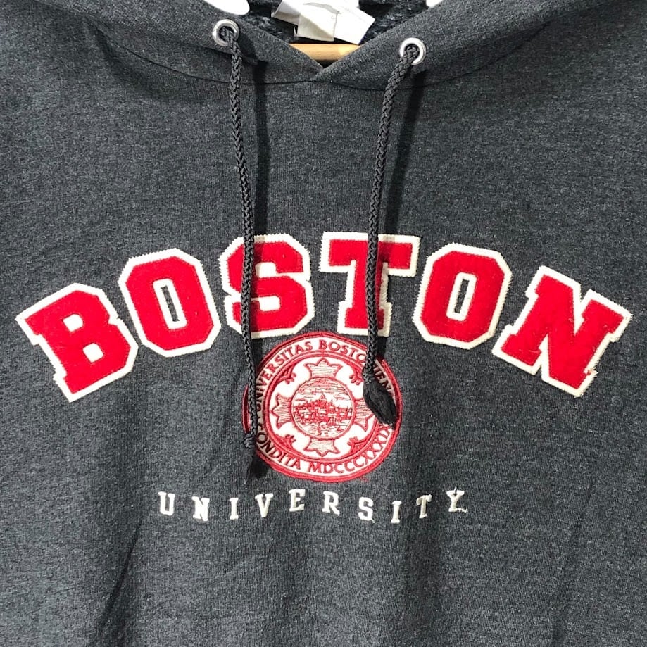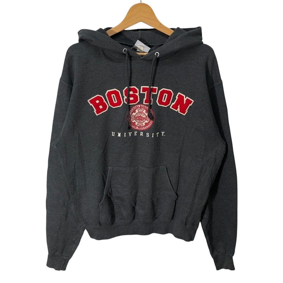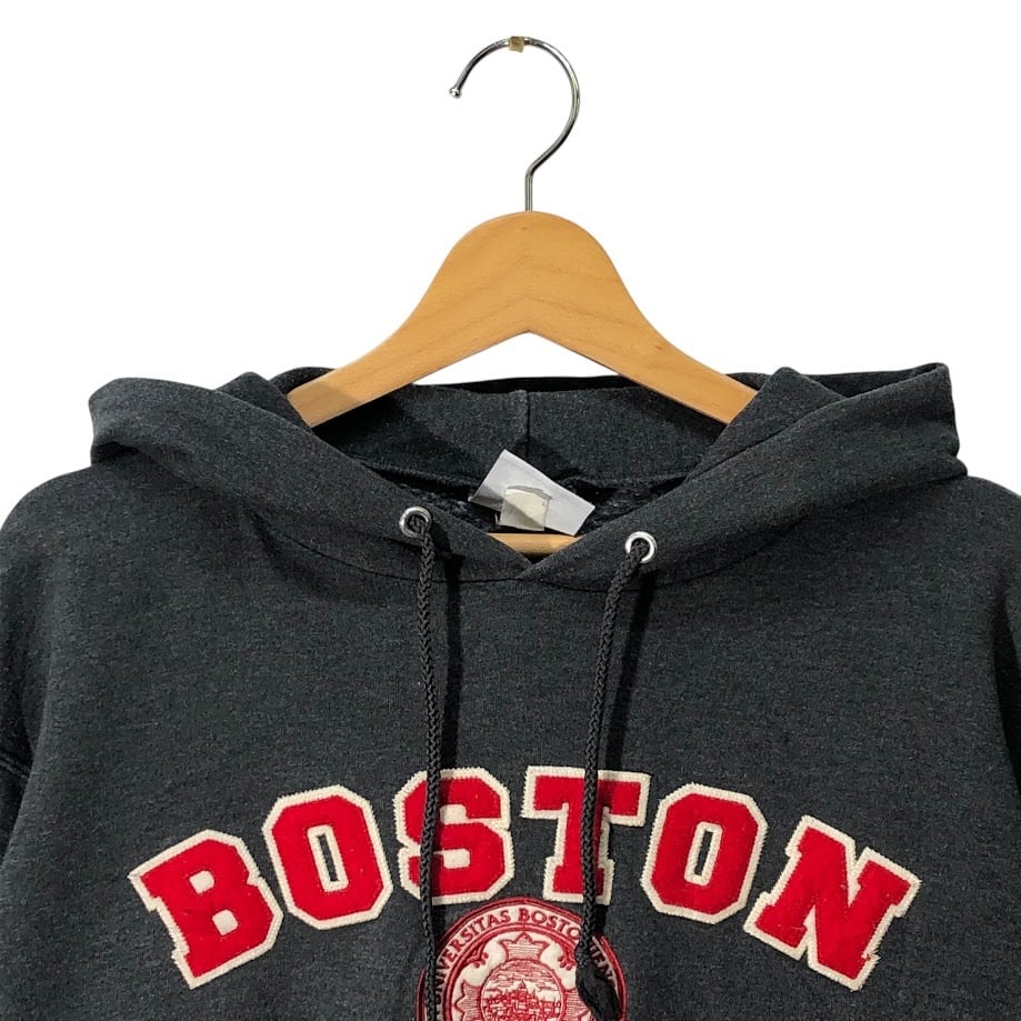 Champion チャンピオン ECO BOSTON ボストン カレッジ刺繍 パーカー フーディー プルオーバー 長袖 フロント刺繍 袖刺繍 Nicaragua製 Mサイズ ダークグレー