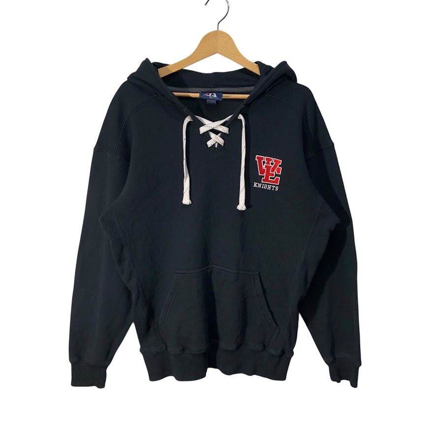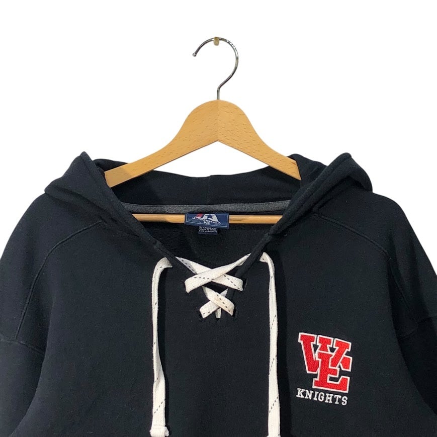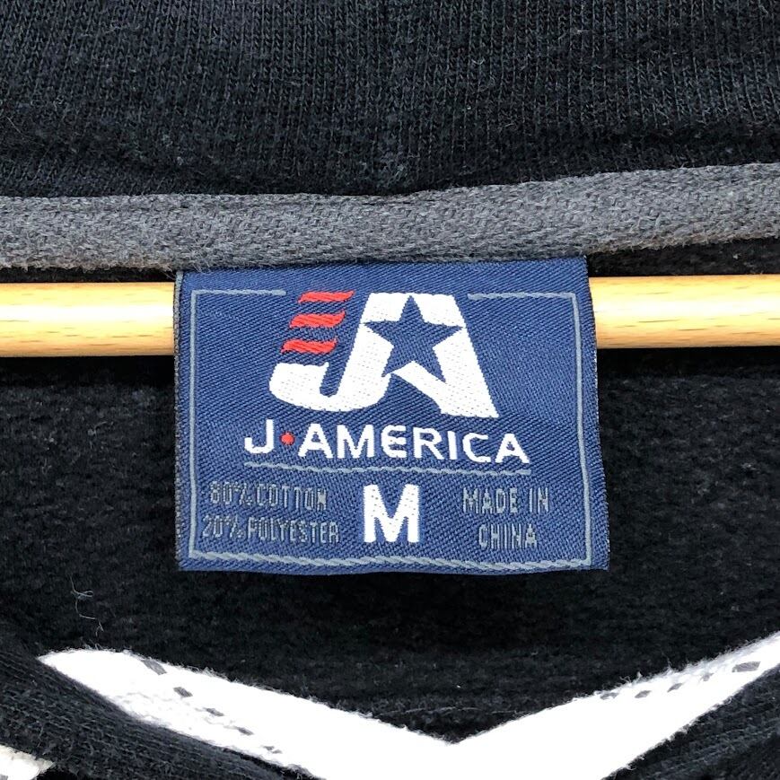 J.AMERICA レースアップ リバースウィーブ織り レスリング スポーツ パーカー フーディー プルオーバー 長袖 ワンポイント刺繍 CHINA製 Mサイズ ブラック