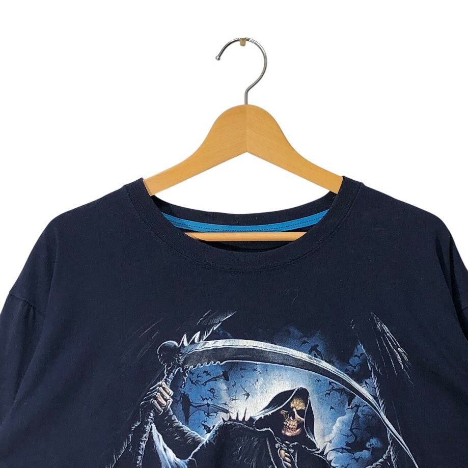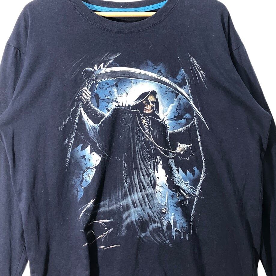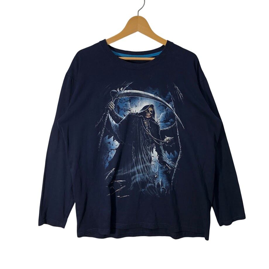 Grim Reaper 死神 ドクロ スカル 長袖 ロンT フロントプリント クルーネック CHINA製 ネイビー