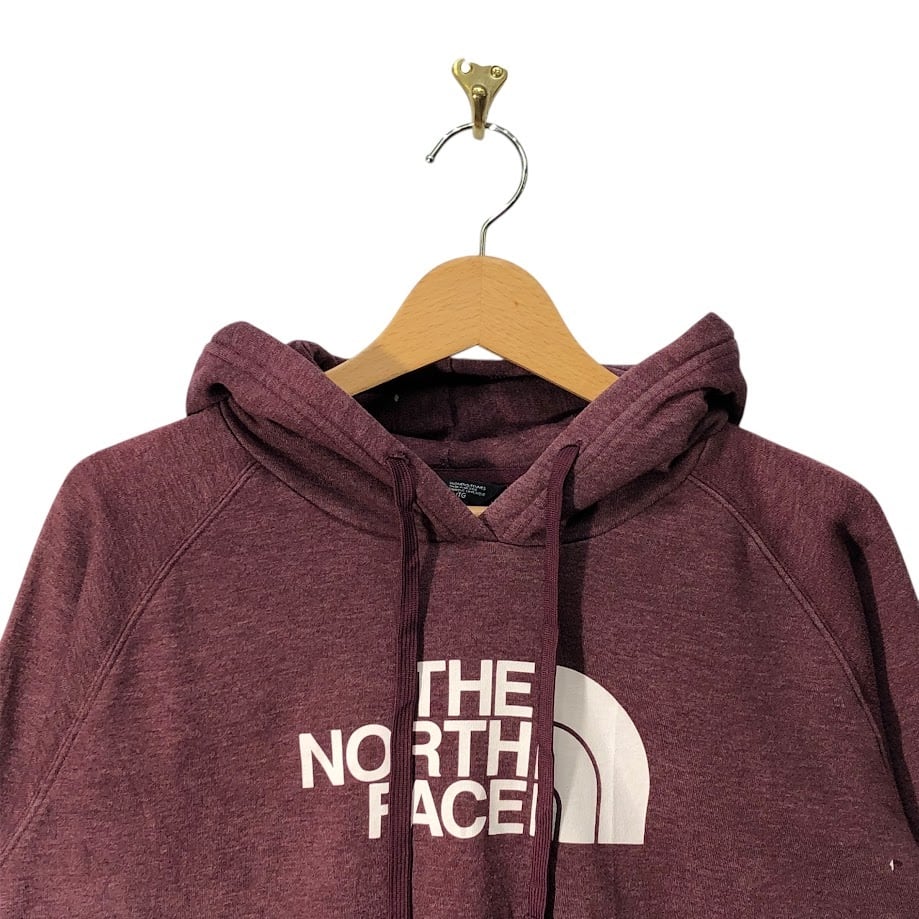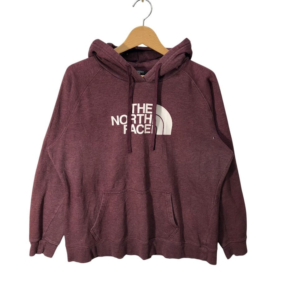THE NORTH FACE ザノースフェイス ロゴプリント パーカー フーディー プルオーバー 長袖 フロントプリント オーバーサイズ ビックシルエット Mexico製 Women's XLサイズ ワインレッド
