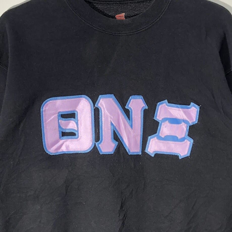 Hanes ヘインズ ギリシャ文字 Thefa No Xi スウェット トレーナー 長袖 フロント刺繍 クルーネック Nicaragua製 Mサイズ ブラック