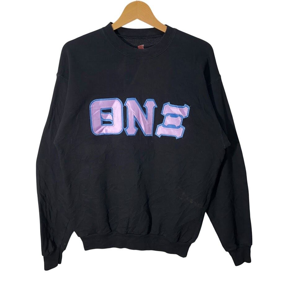 商品名:Hanes ヘインズ ギリシャ文字 Thefa No Xi スウェット トレーナー 長袖 フロント刺繍 クルーネック Nicaragua製 Mサイズ ブラック