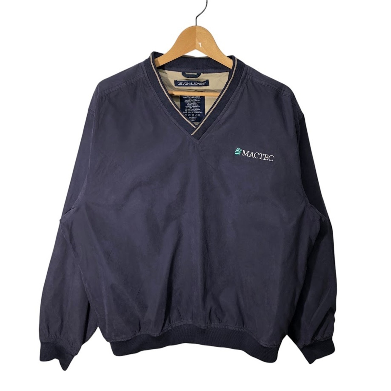 商品名: DEVON&JONES デボンアンドジョーズ ナイロンプルオーバー ライトアウター ナイロンジャケット 企業ロゴ刺繍 長袖 フロント刺繡 スリランカ製 Lサイズ ネイビー ブルー