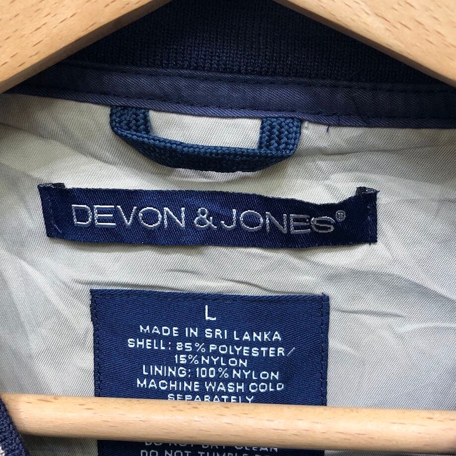 DEVON&JONES デボンアンドジョーズ ナイロンプルオーバー ライトアウター ナイロンジャケット 企業ロゴ刺繍 長袖 フロント刺繡 スリランカ製 Lサイズ ネイビー ブルー
