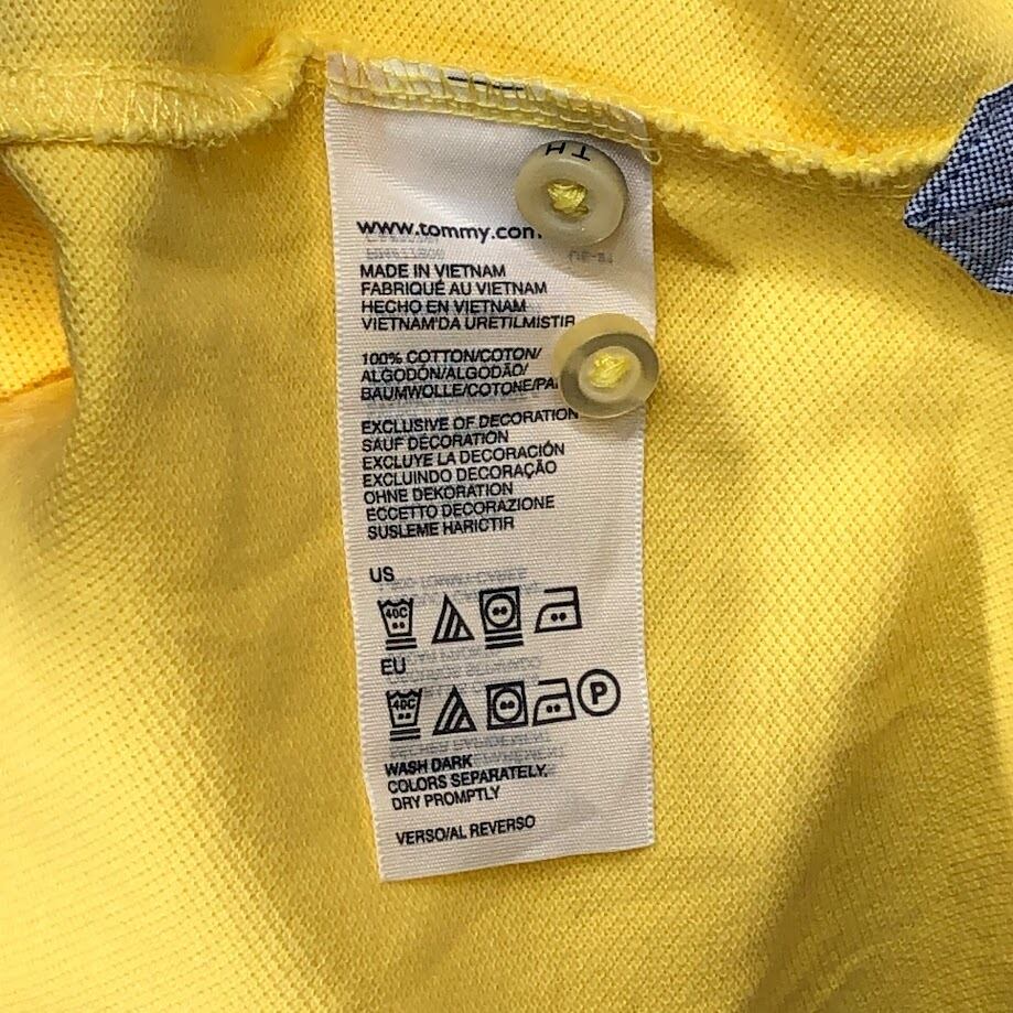 商品名:TOMMY HILFIGER トミーヒルフィガー ポロシャツ デザイン刺繍 半袖 ベトナム製 L/Gサイズ イエロー
