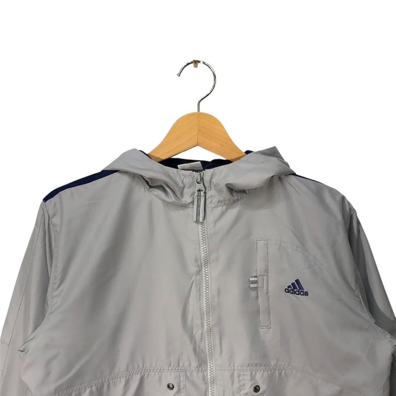 adidas アディダス CLIMAPROOF ナイロンジャケット フード メッシュライナー Vietnam製 Mサイズ グレー ネイビー