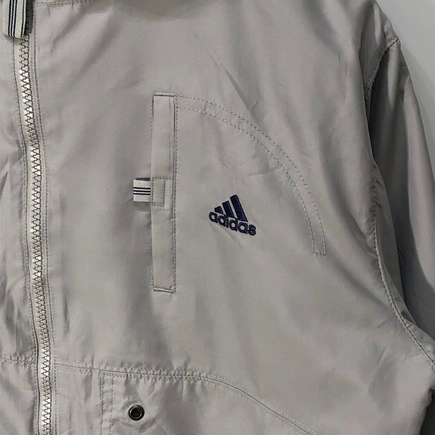 商品名:adidas アディダス CLIMAPROOF ナイロンジャケット フード メッシュライナー Vietnam製 Mサイズ グレー ネイビー