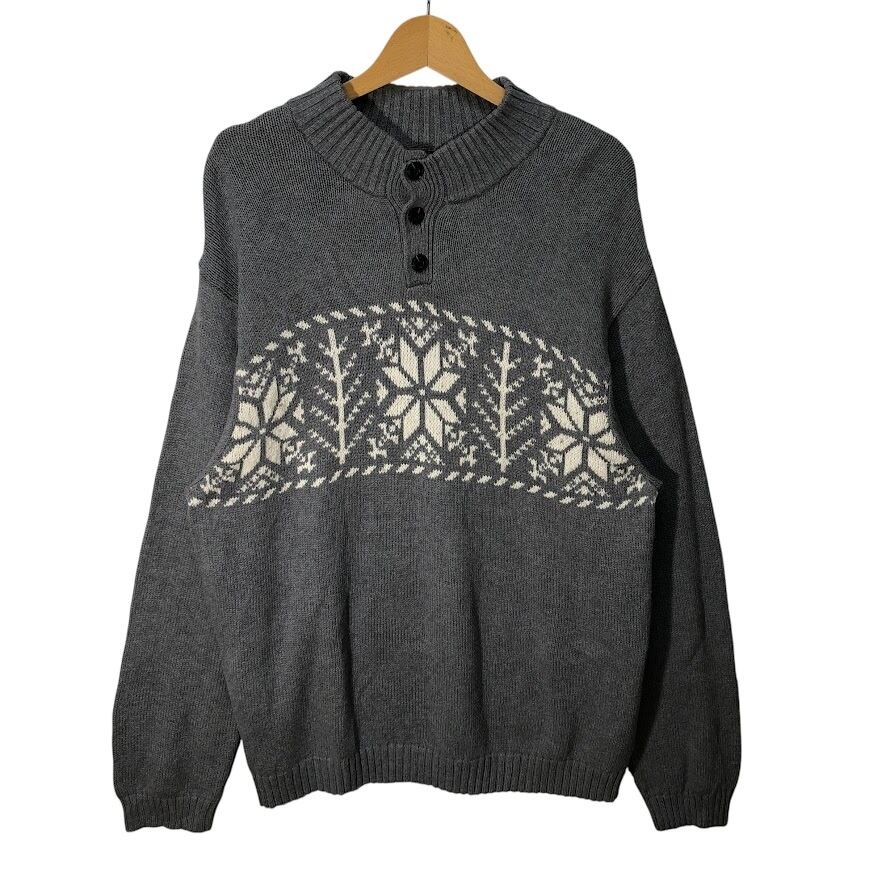 CHAPS チャップス ノルディック柄 ニット セーター ハーフボタン 長袖 オーバーサイズ CHINA製 XLサイズ グレー