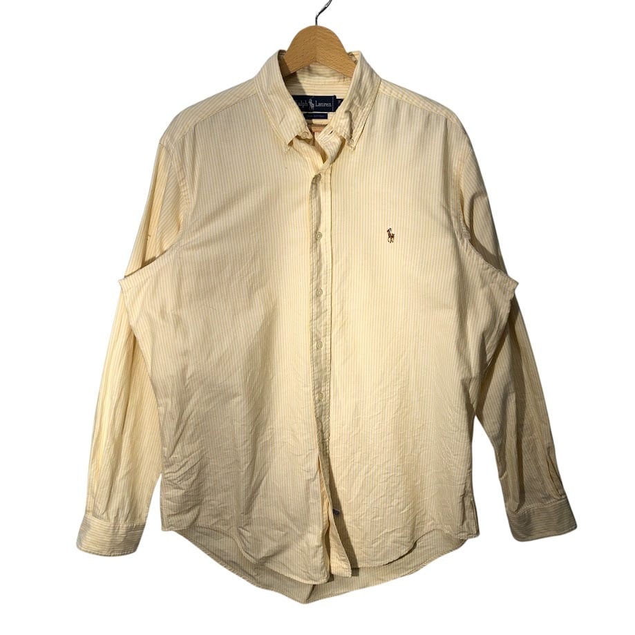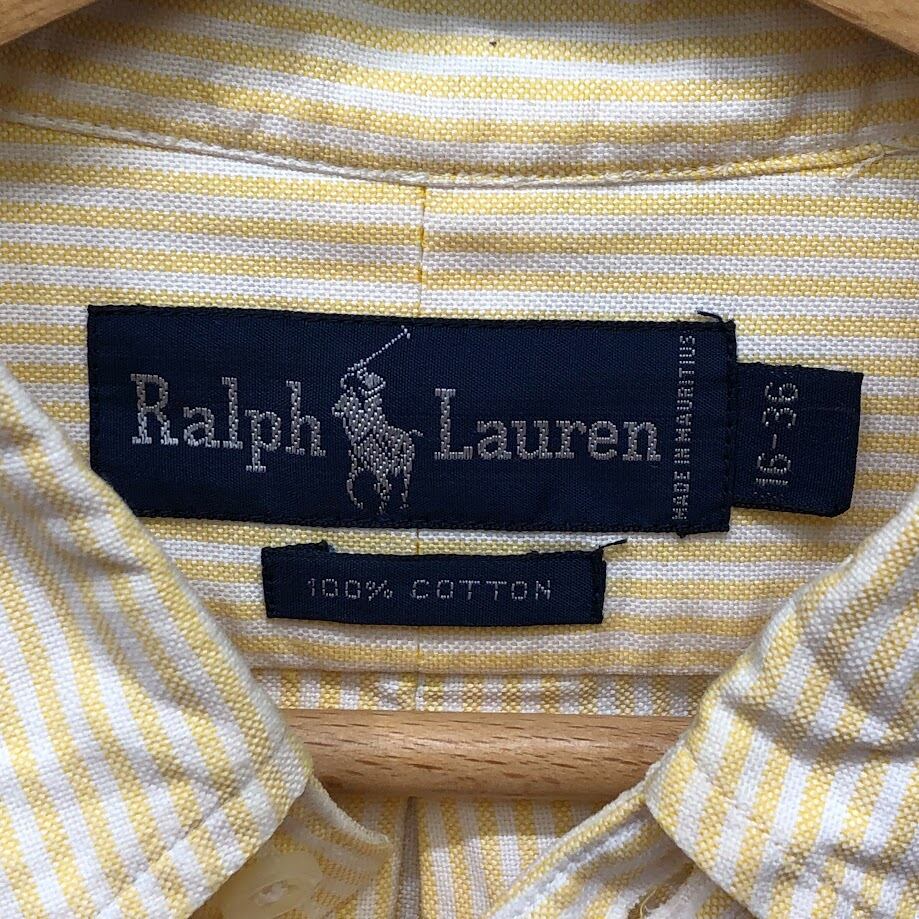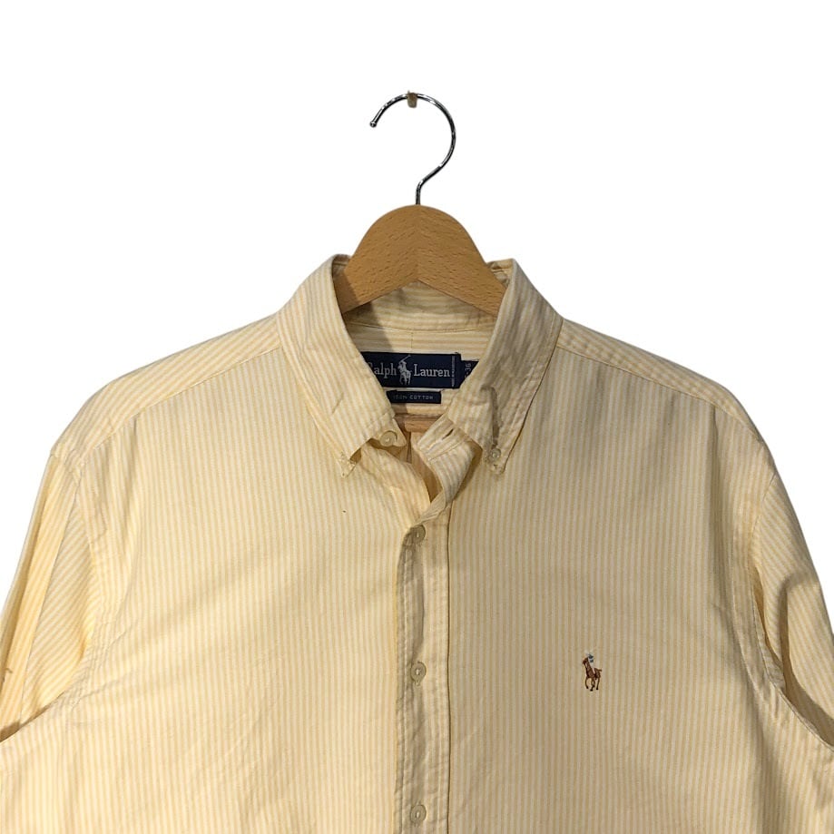 RALPH LAUREN ラルフローレン オックスフォード ストライプ コットン シャツ ボタンダウンシャツ ポニー刺繍 MAURITIUS製 16-36サイズ イエロー ホワイト