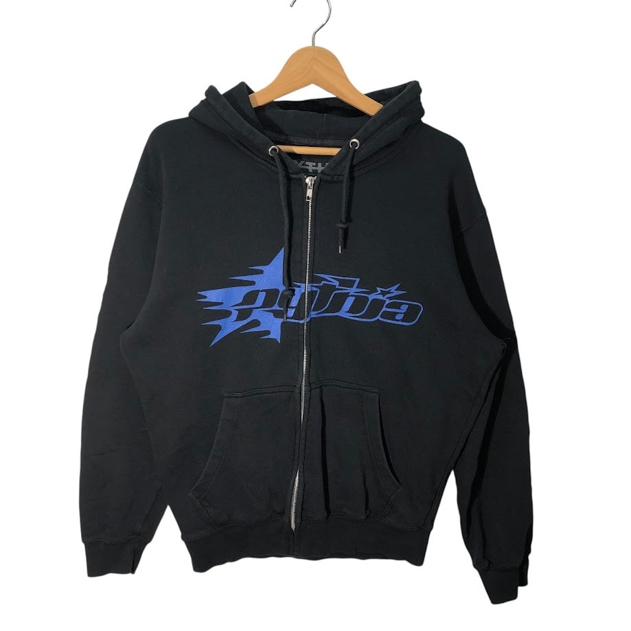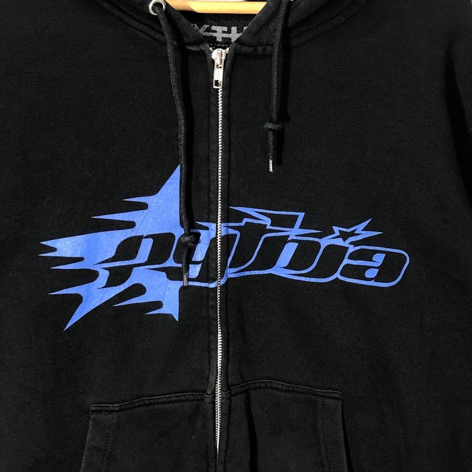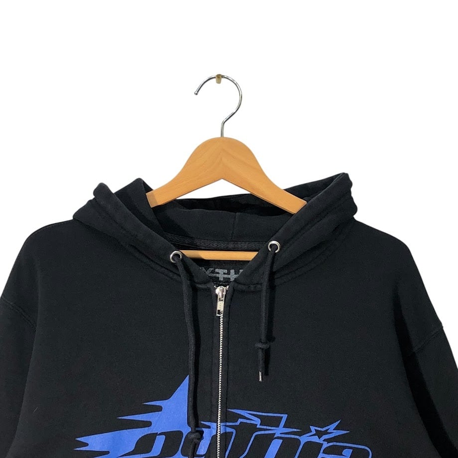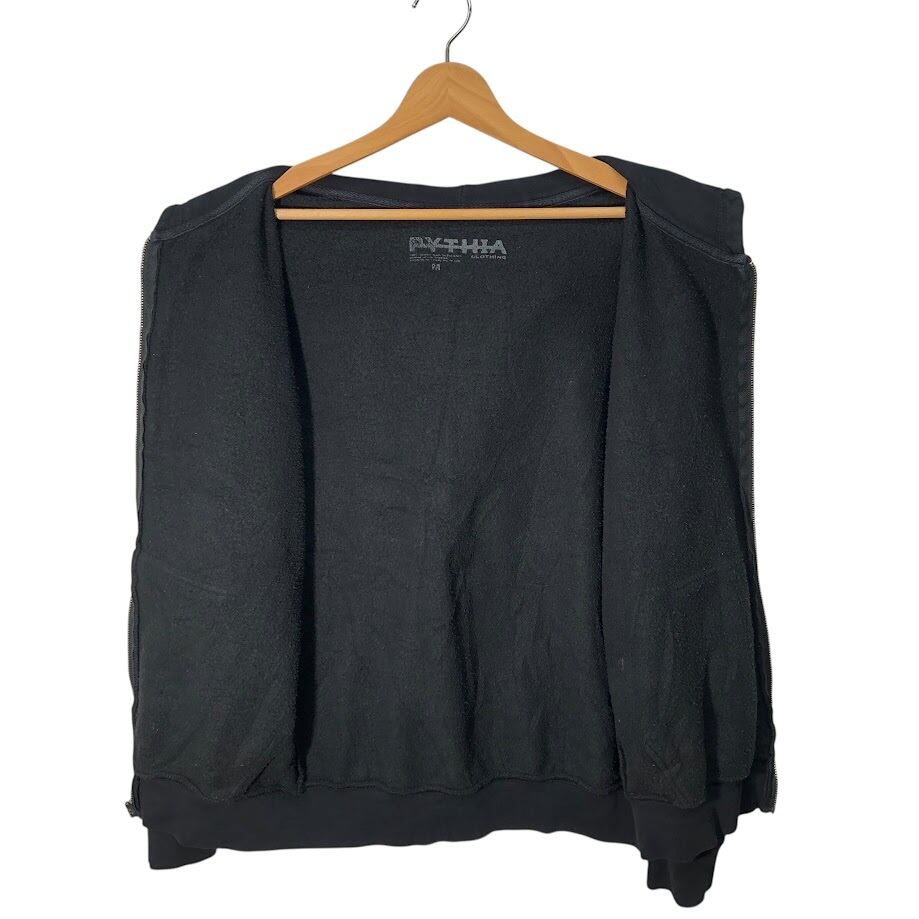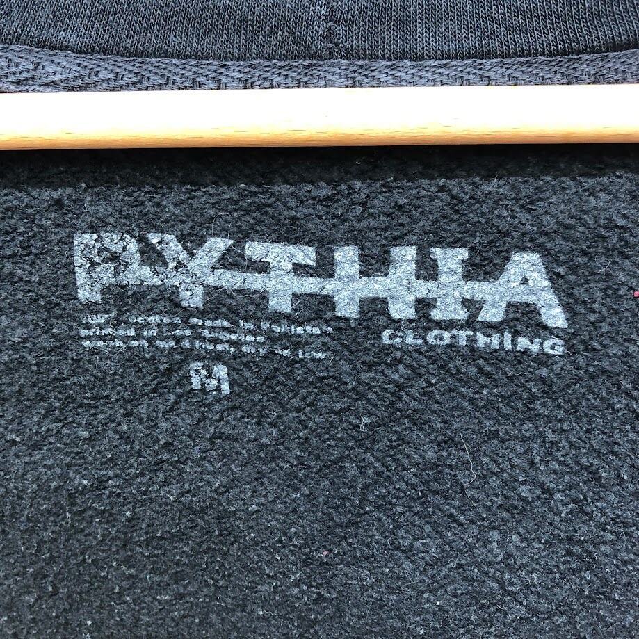 PYTHIA ピィティア フルジップ ジップアップ パーカー フーディー プルオーバー フロント バック 袖プリント Pakistan製 Mサイズ ブラック