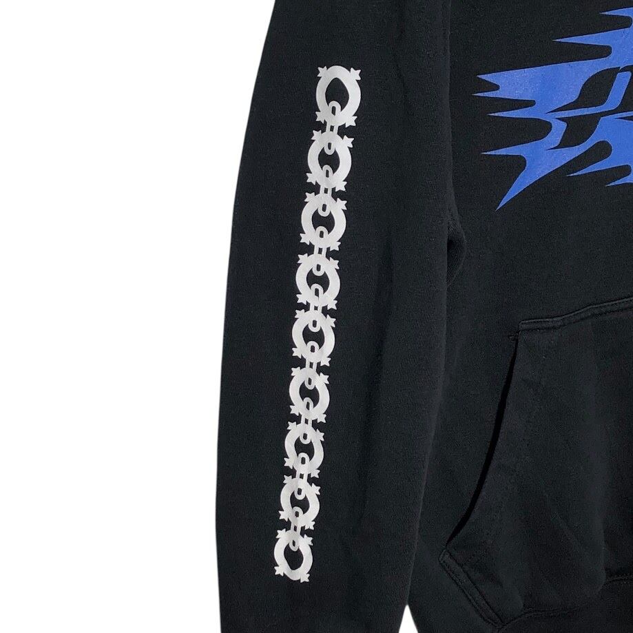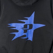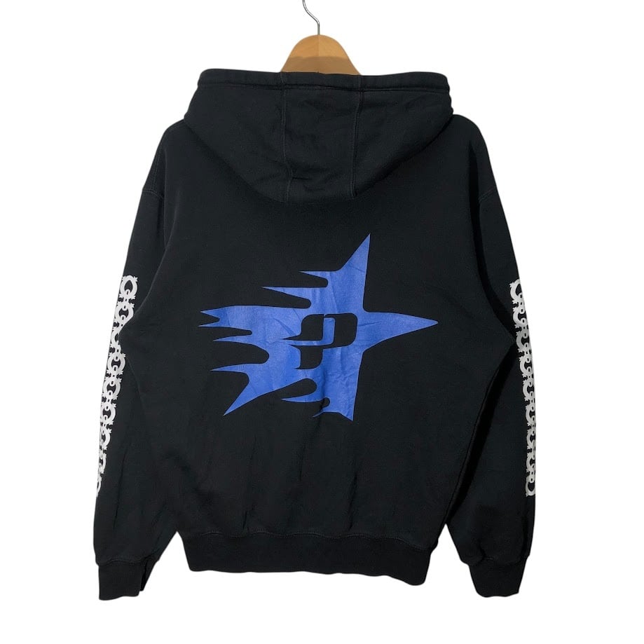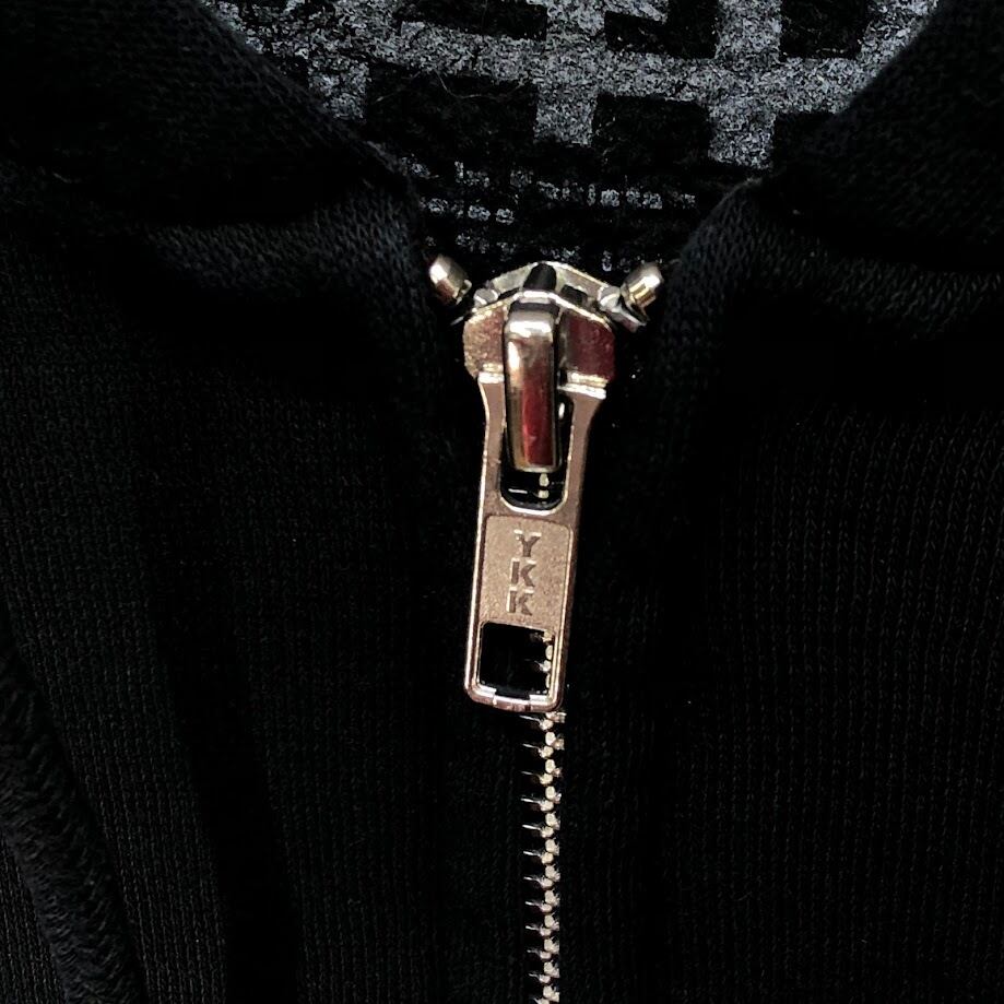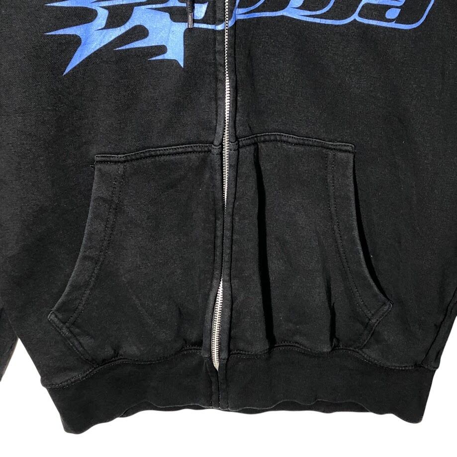 商品名:PYTHIA ピィティア フルジップ ジップアップ パーカー フーディー プルオーバー フロント バック 袖プリント Pakistan製 Mサイズ ブラック