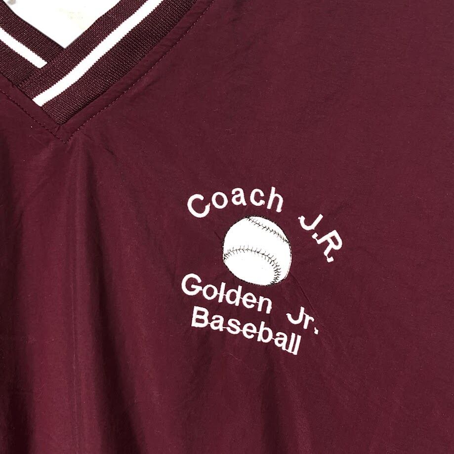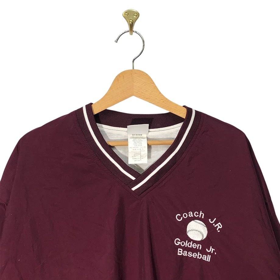 Rawlings ローリングス ナイロンプルオーバー Vネック ベースボール チーム デザイン刺繍 Golden Jr. BASEBALL タイワン製 XLサイズ ワインレッド
