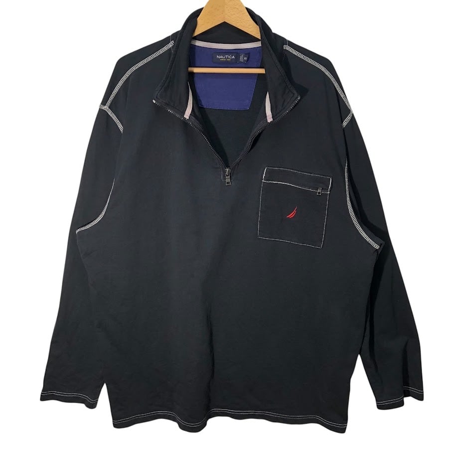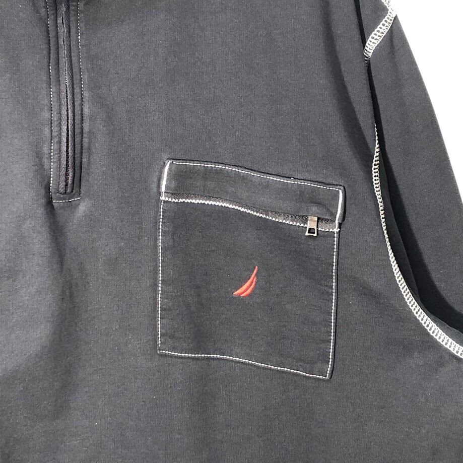 NAUTICA ノーティカ ハーフジップ スウェット シャツ 胸ポケットジッパー カンボジア製 XXLサイズ ブラック