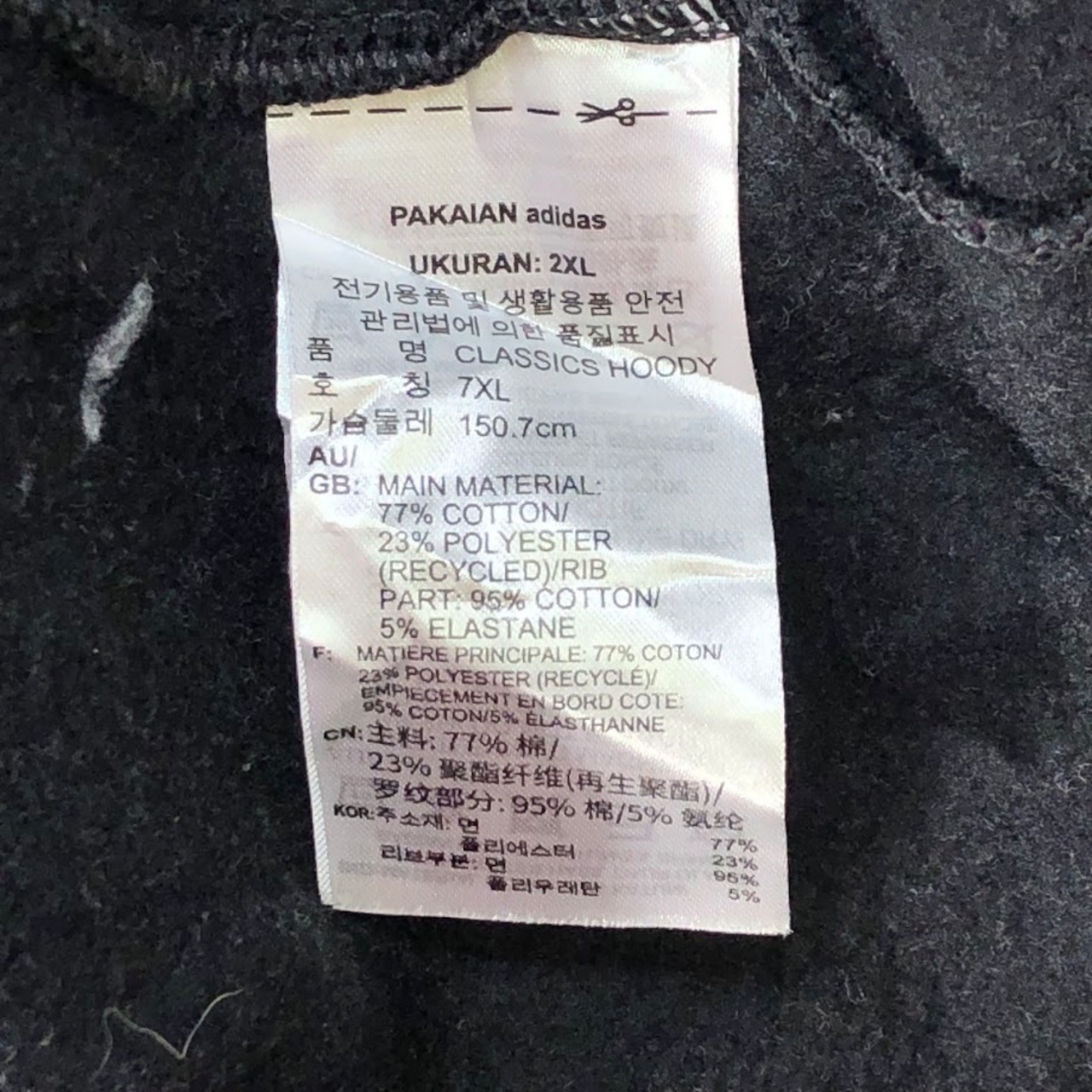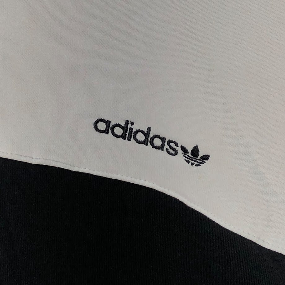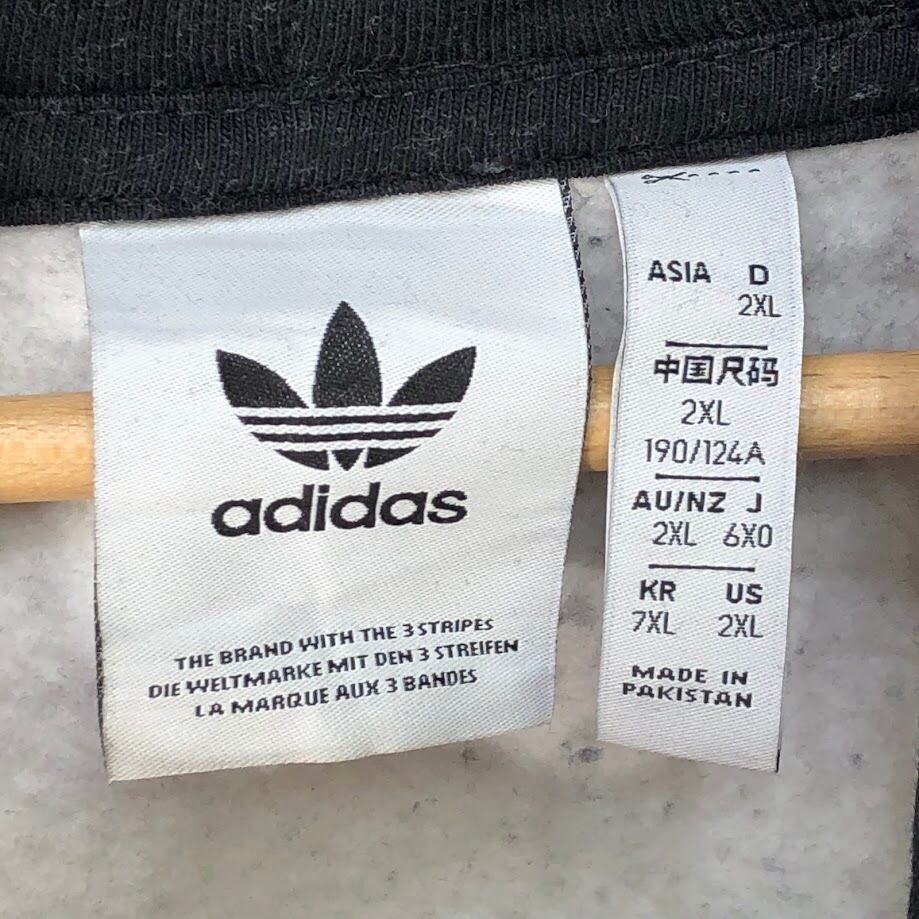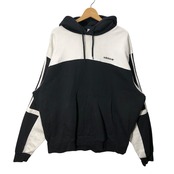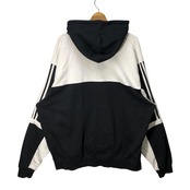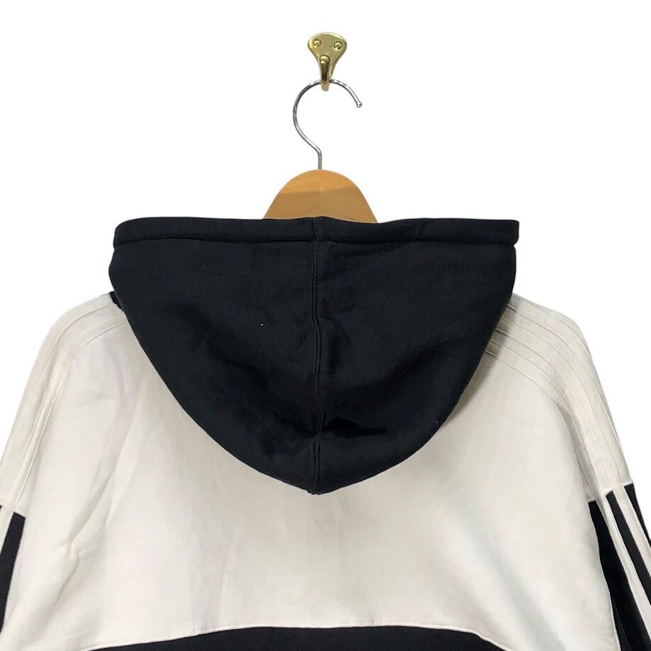 商品名:adidas アディダス バイカラー 切替スリーブ スリーライン パーカー フーディー プルオーバー 長袖 ワンポイント刺繡 オーバーサイズ ビッグシルエット PAKISTAN製 2XLサイズ ブラック ホワイト