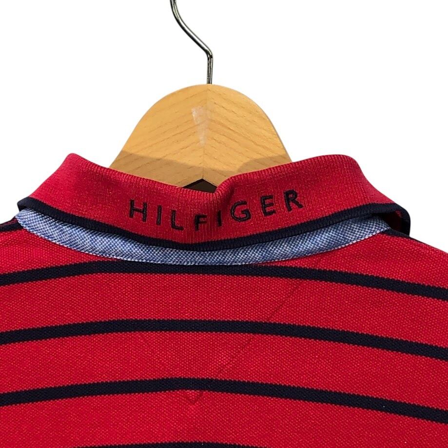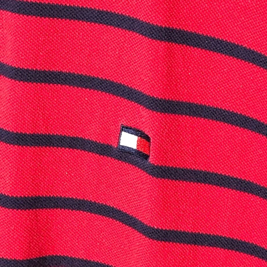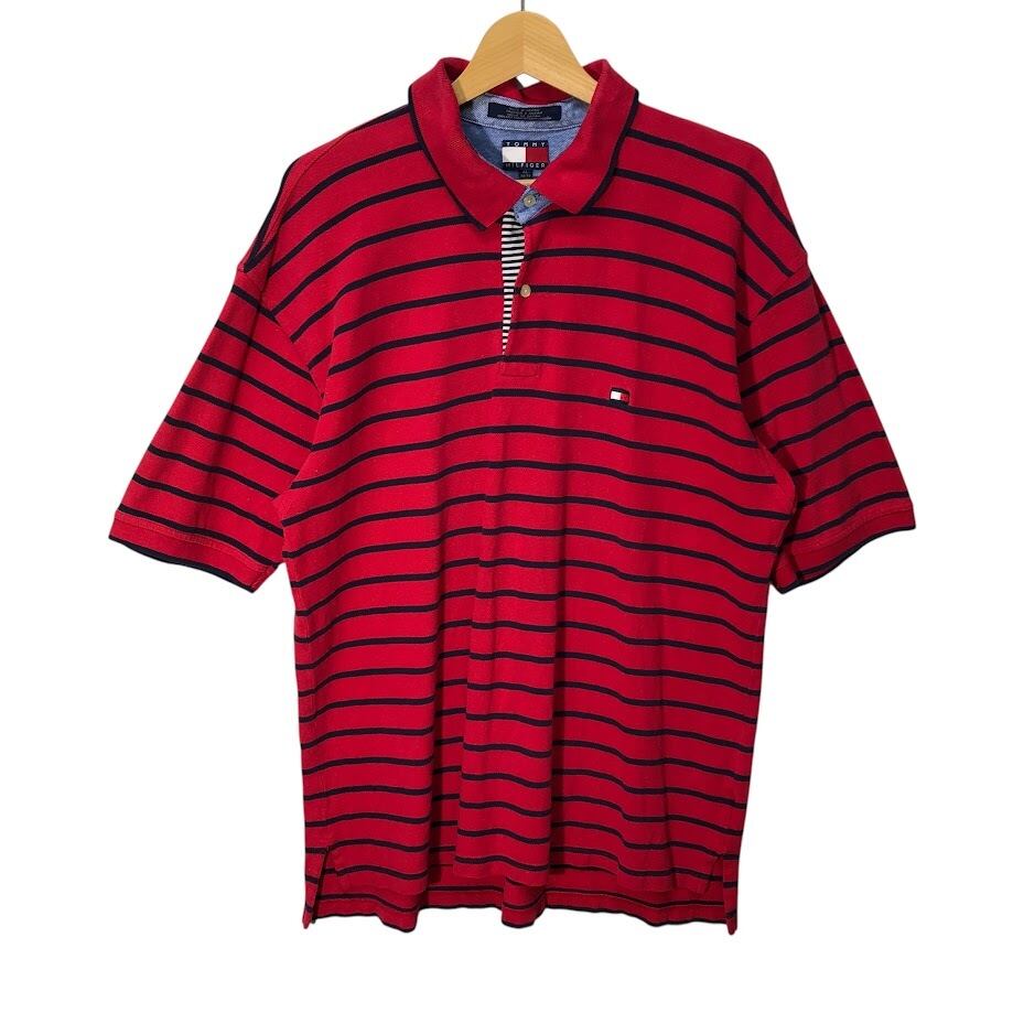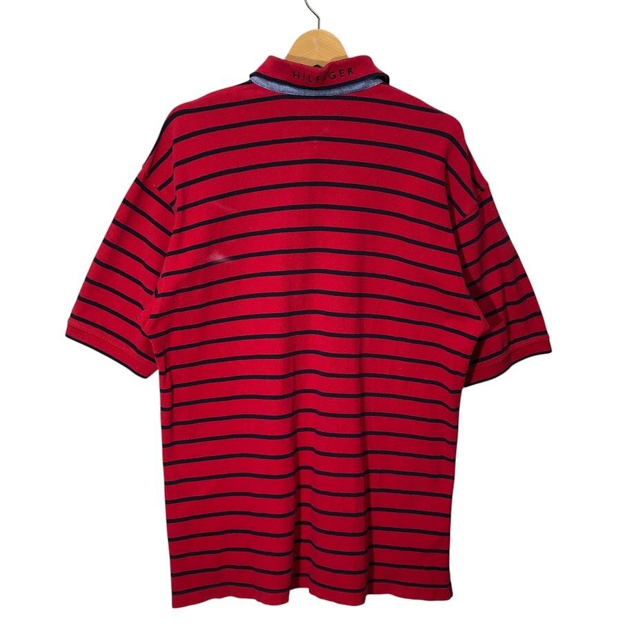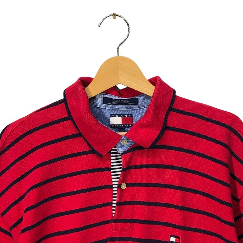 商品名:90's vintage 90年代 ヴィンテージ TOMMY HILFIGER トミーヒルフィガー 旧式タグ 半袖シャツ ポロシャツ ボーダー柄 SAIPAN製 XLサイズ レッド ネイビー