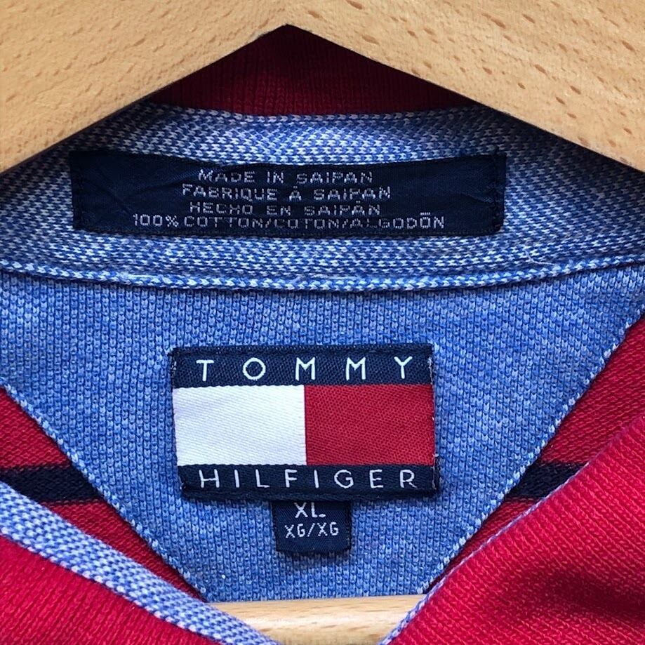 90's vintage 90年代 ヴィンテージ TOMMY HILFIGER トミーヒルフィガー 旧式タグ 半袖シャツ ポロシャツ ボーダー柄 SAIPAN製 XLサイズ レッド ネイビー