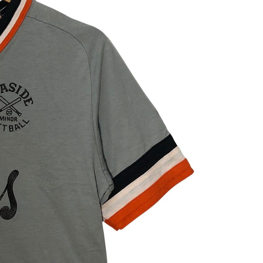 90's vintage Athletic Knit Leaside Minor Softball ソフトボール チーム 8 スポーツ リンガーシャツ 半袖 Tシャツ フロントバックプリント ワンポイントプリント ジャージ Canada製 Sサイズ グレー