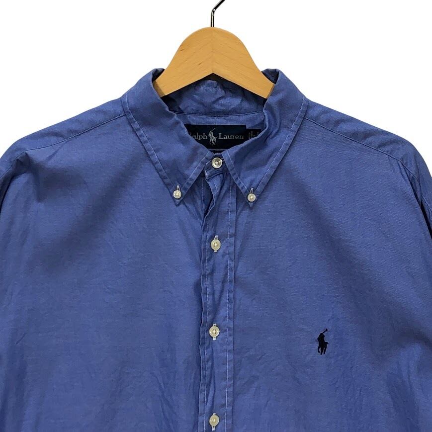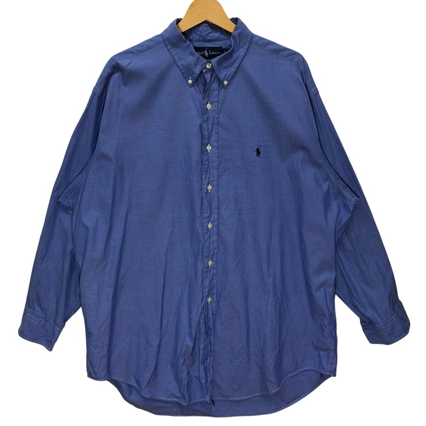 商品名:90's vintage 90年代 ヴィンテージ RALPH LAUREN ラルフローレン YARMOUTH コットンオックスフォードシャツ 長袖シャツ ポニー刺繡 HongKong製 17 32/33サイズ ブルー