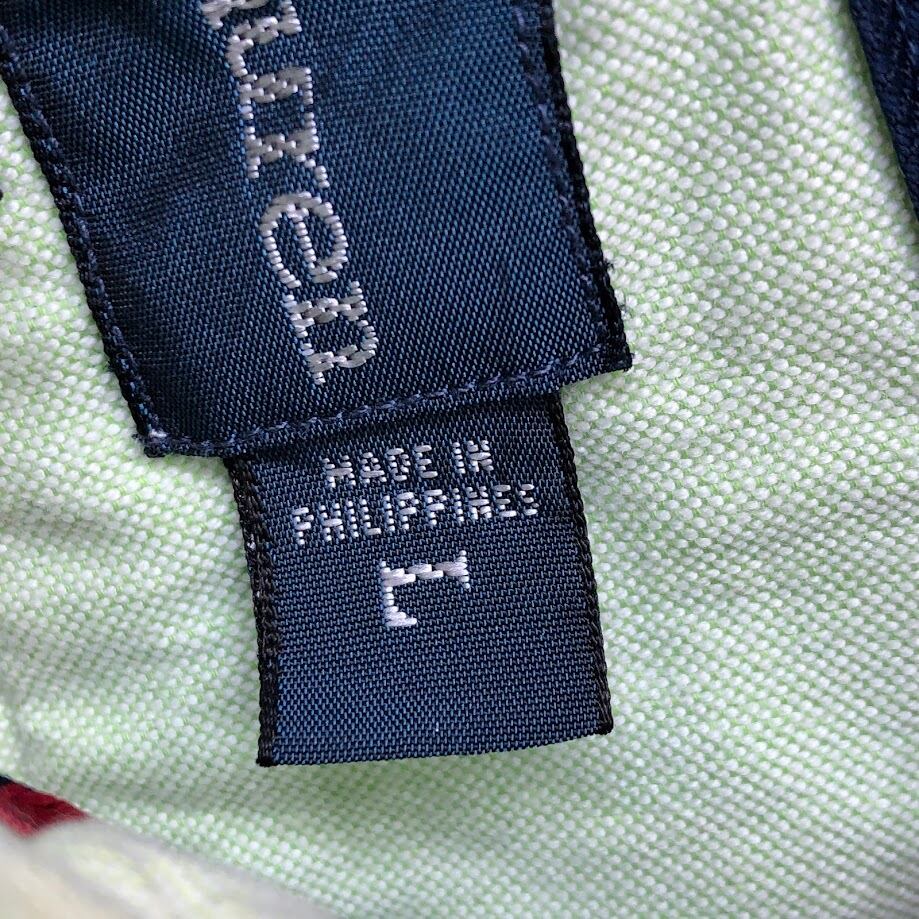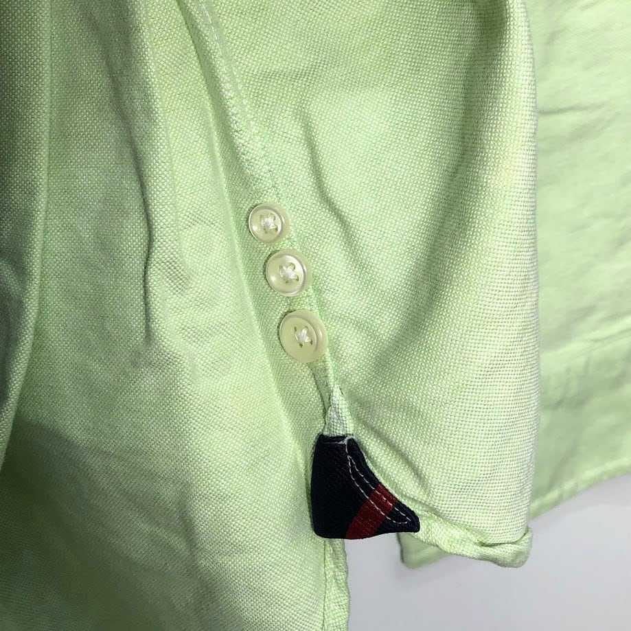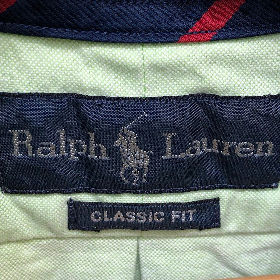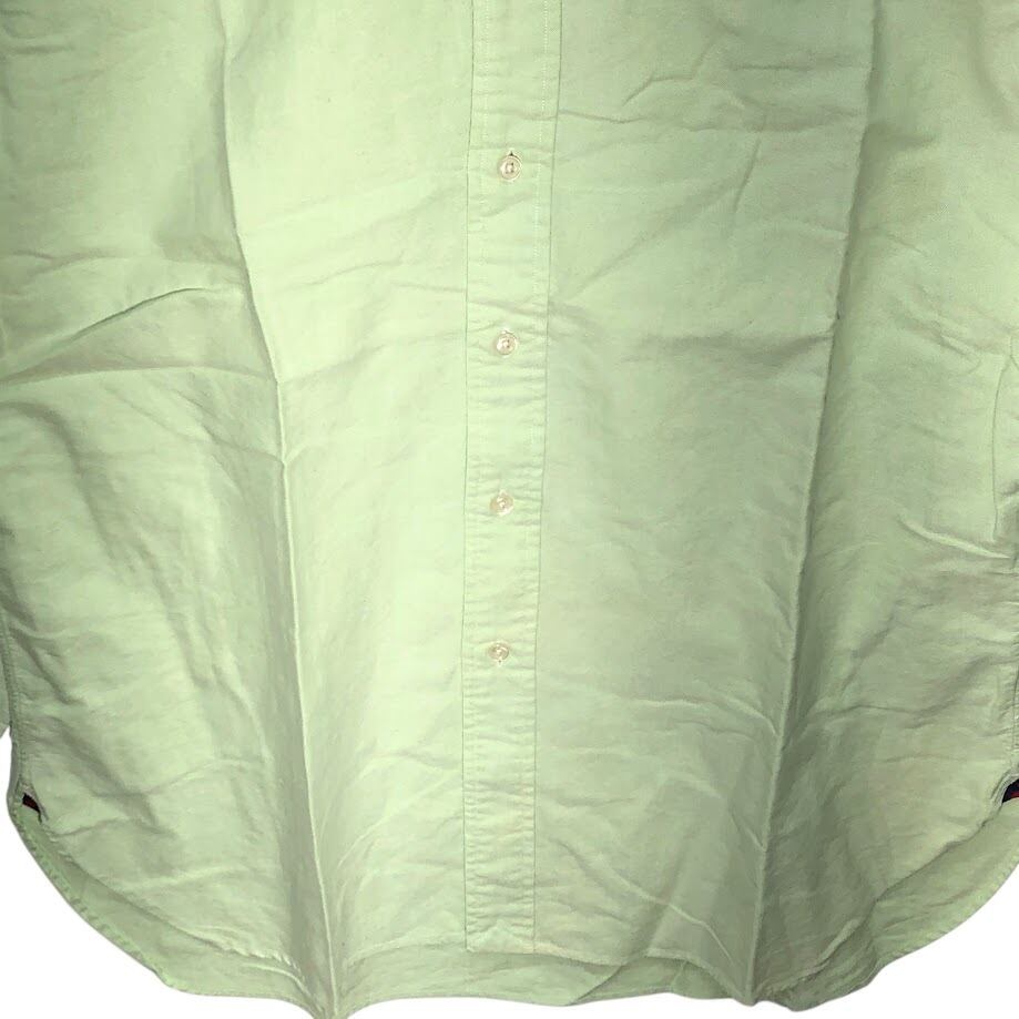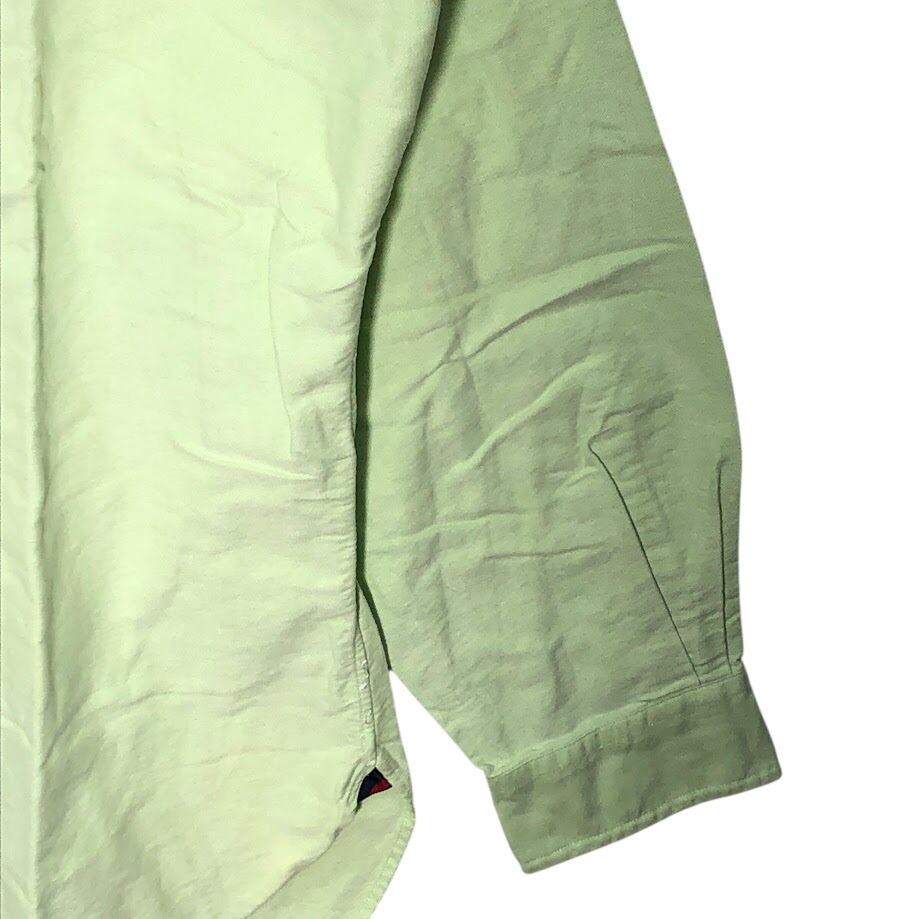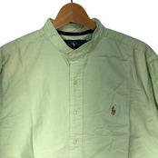 Ralph Lauren/ラルフローレン CLASSIC FIT ノーカラー長袖シャツ ポニー刺繡 長袖シャツ ボタンダウン ワンポイント刺繡 オーバーサイズ Philippines製 Lサイズ ライトグリーン