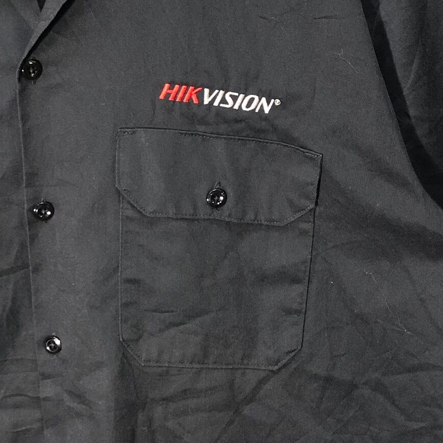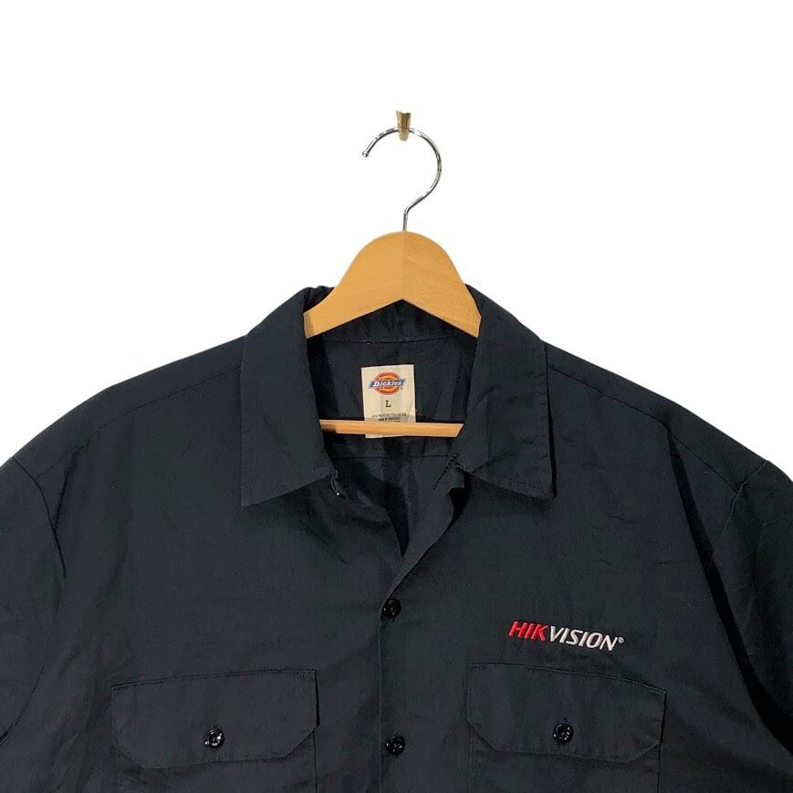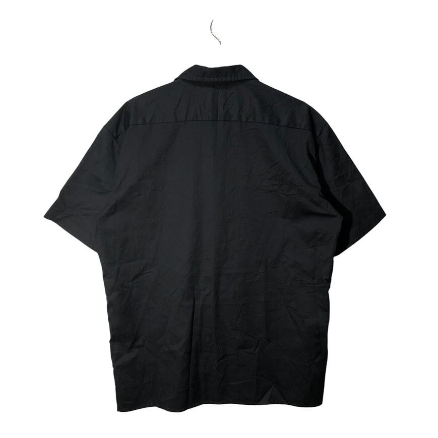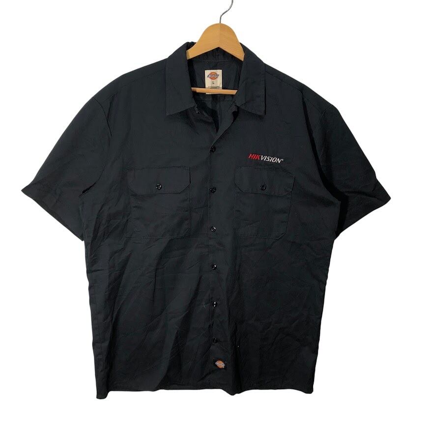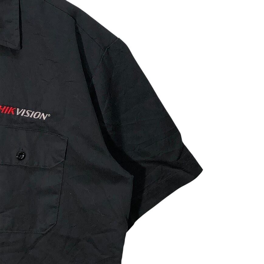 Dickies ディッキーズ ワークシャツ 企業ロゴ刺繡 半袖 シャツ ボタンダウン オーバーサイズ ビッグシルエット HONDURAS製 Lサイズ ブラック