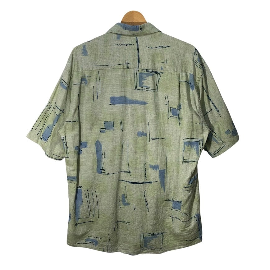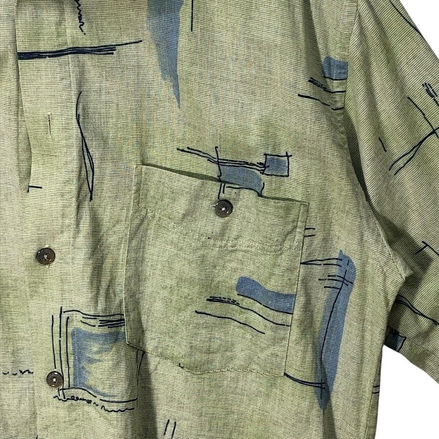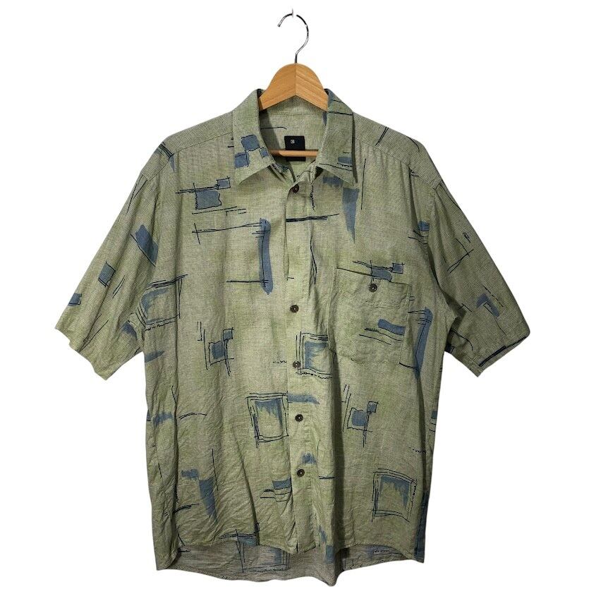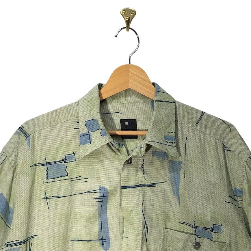 CASA MODA カーサモーダ ORIFGINAL SPIRIT ユーロブランド アロハシャツ 幾何学模様 総柄 半袖 シャツ ボタンダウン ライトグリーン