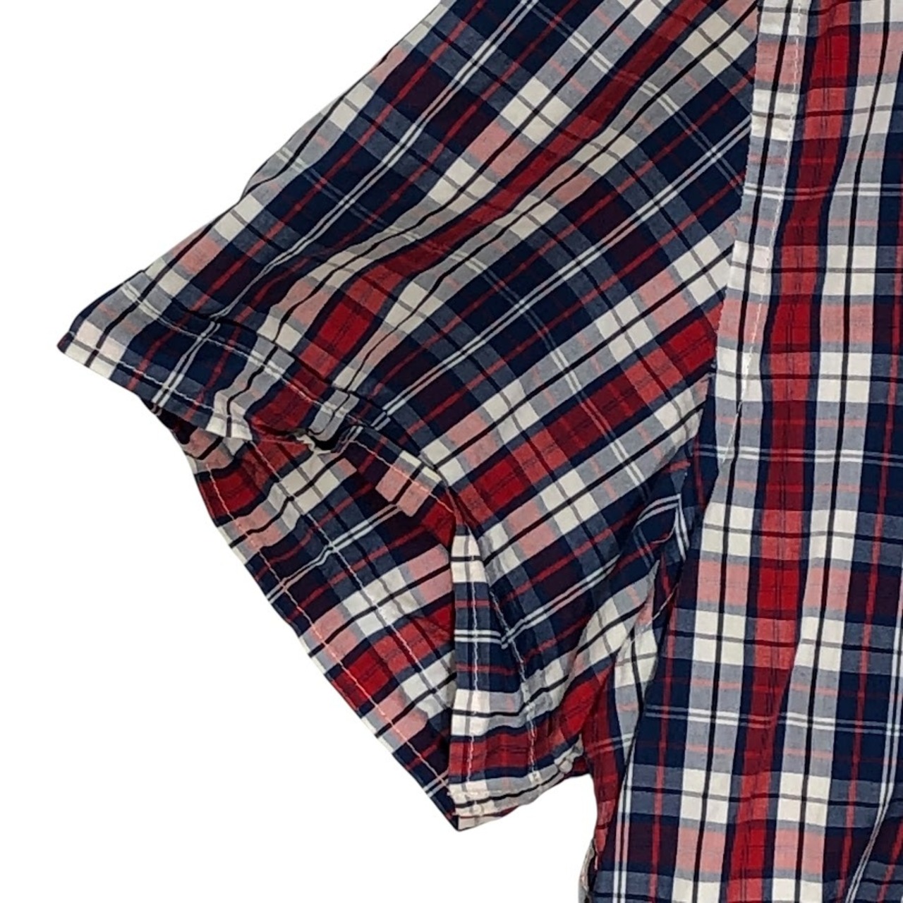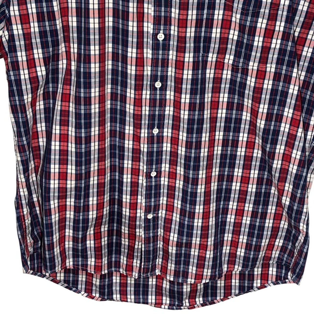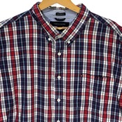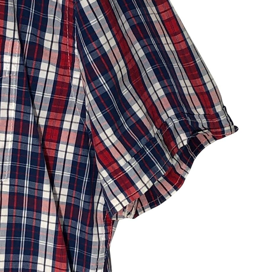 商品名:TOMMY HILFIGER/トミーヒルフィガー 半袖シャツ チェック柄 ボタンダウンシャツ フラッグ刺繡 胸ポケット オーバーサイズ00年代/00's バングラディシュ製 メンズ XXL レッド/ブルー/ホワイト
