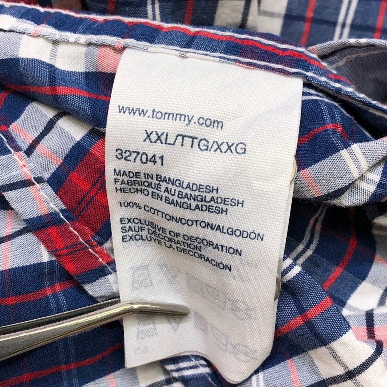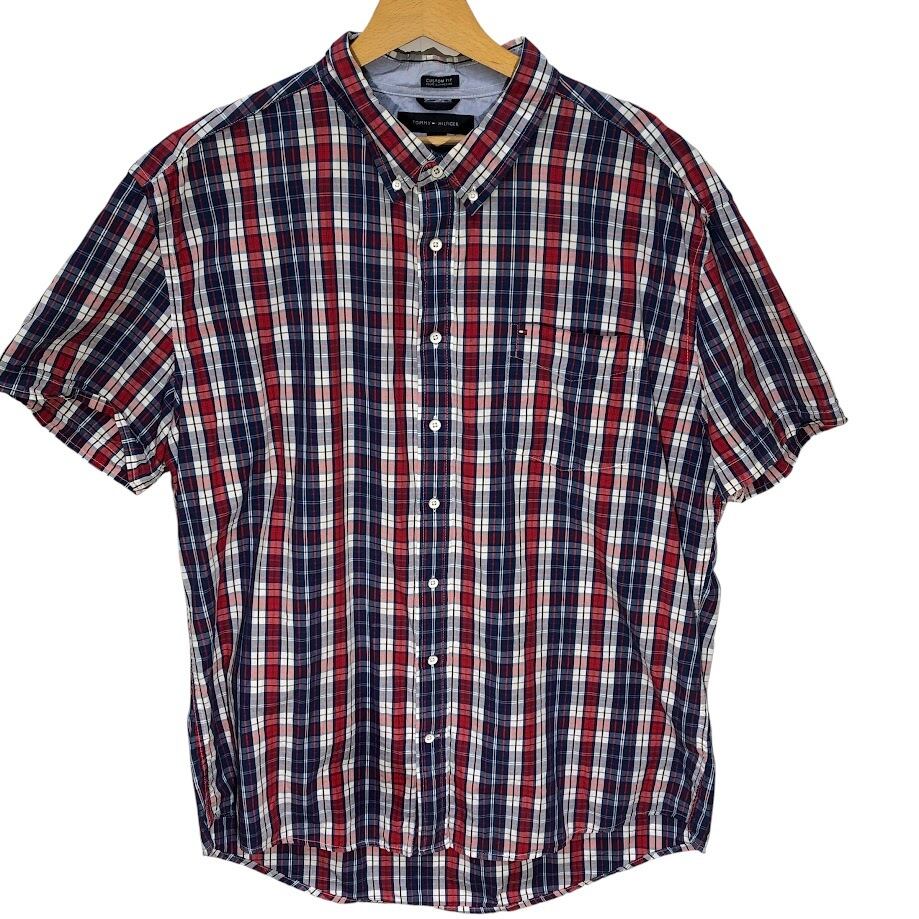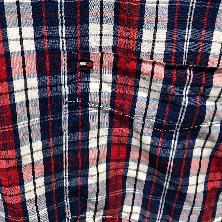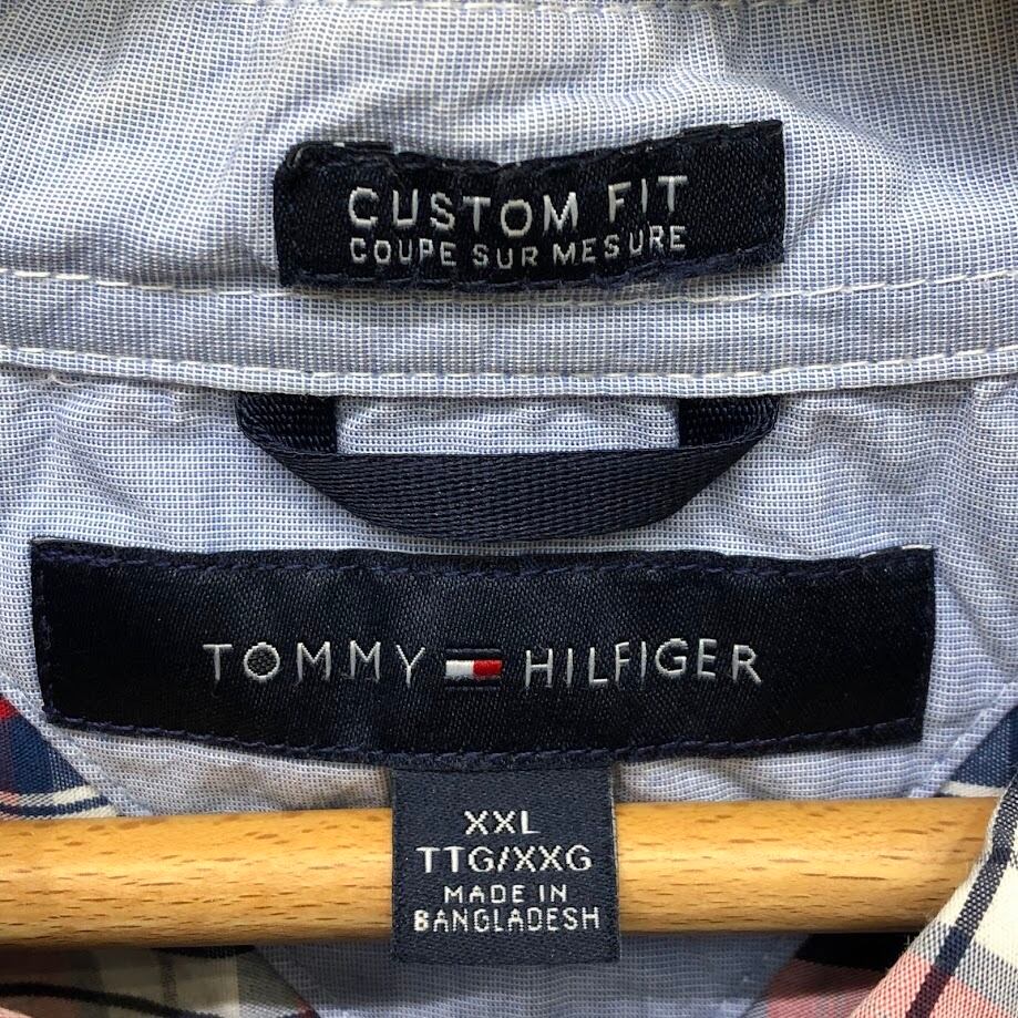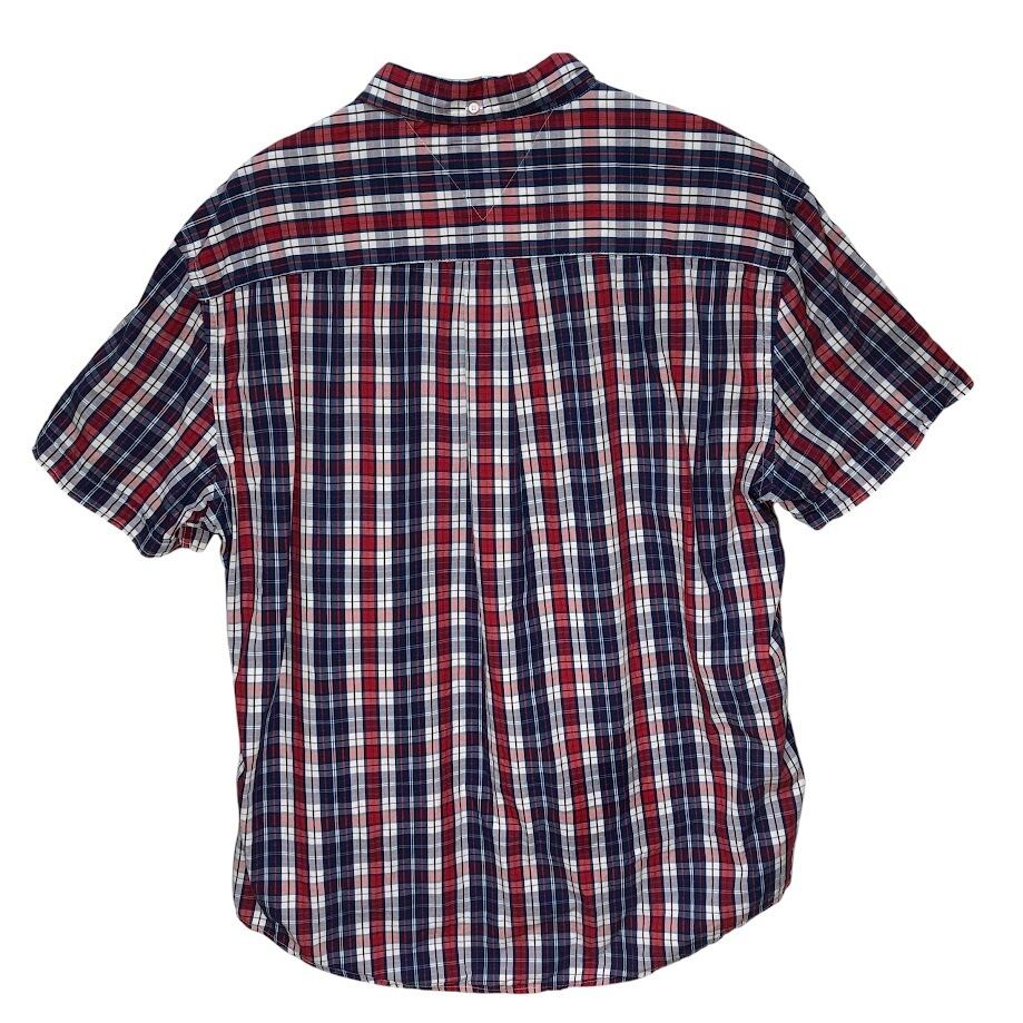 TOMMY HILFIGER/トミーヒルフィガー 半袖シャツ チェック柄 ボタンダウンシャツ フラッグ刺繡 胸ポケット オーバーサイズ00年代/00's バングラディシュ製 メンズ XXL レッド/ブルー/ホワイト