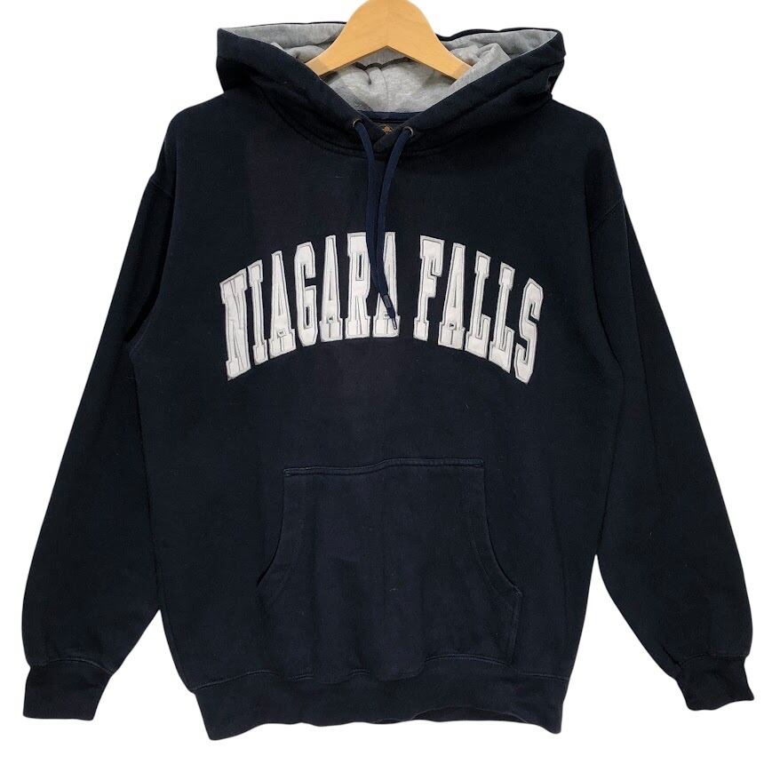 PRAIRIE MOUNTAIN プレイリーマウンテン NAIAGARA FALLS ナイアガラ パーカー フーディー プルオーバー 長袖 フロント刺繡 Pakistan製 Sサイズ ネイビー グレー