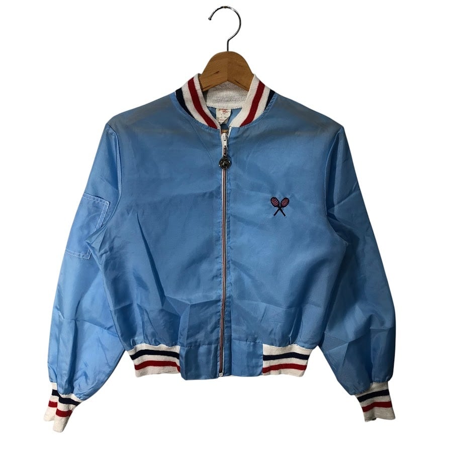 vintage ヴィンテージ Weather Tamer スタジャン テニス リブ フロント刺繍 11/12サイズ ライトブルー