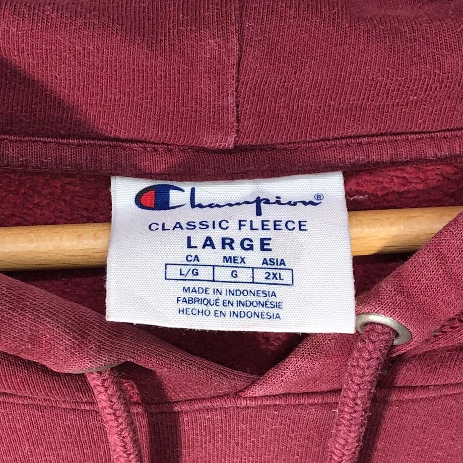 商品名:Champion チャンピオン CLASSIC FLEECE パーカー フーディー プルオーバー 長袖 袖刺繍 ワンポイント刺繡 インドネシア製 ASIA 2XLサイズ ワインレッド