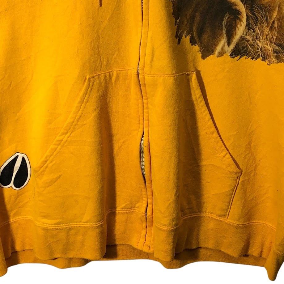 Champion チャンピオン フルジップ ジップアップ 鹿 アニマルプリント パーカー フーディー 長袖 フロントプリント 袖刺繍 Mexico製 XLサイズ イエロー