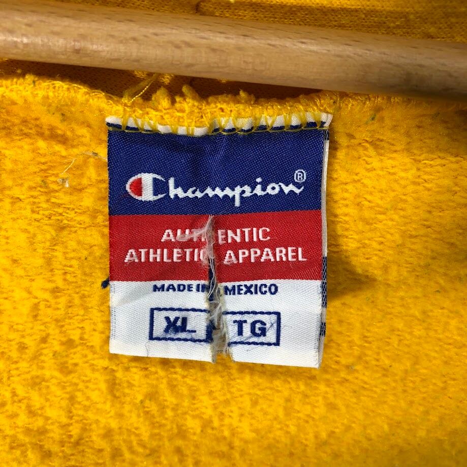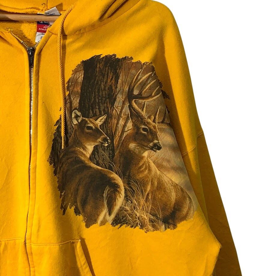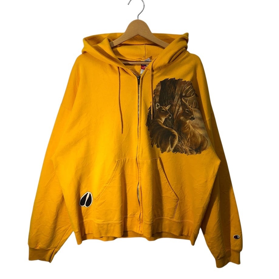 商品名:Champion チャンピオン フルジップ ジップアップ 鹿 アニマルプリント パーカー フーディー 長袖 フロントプリント 袖刺繍 Mexico製 XLサイズ イエロー
