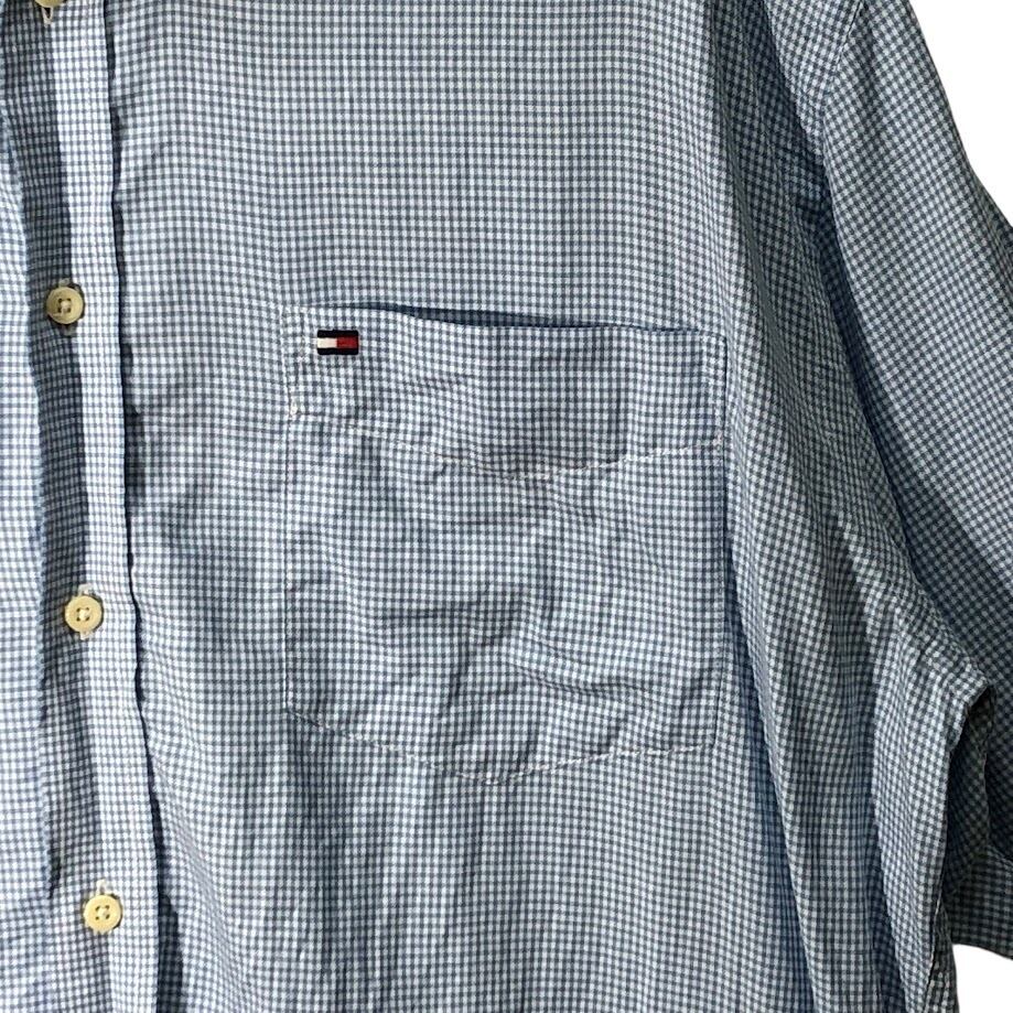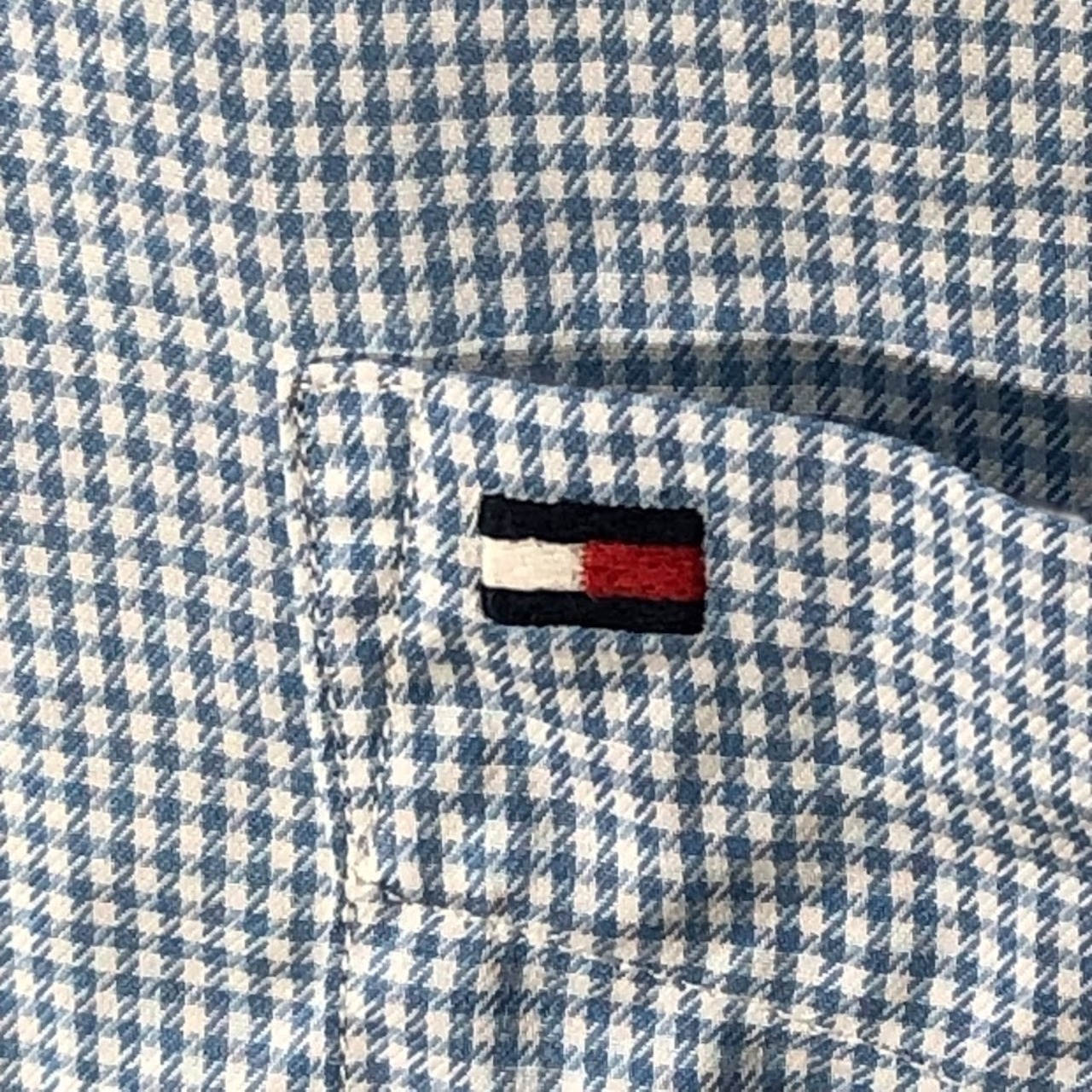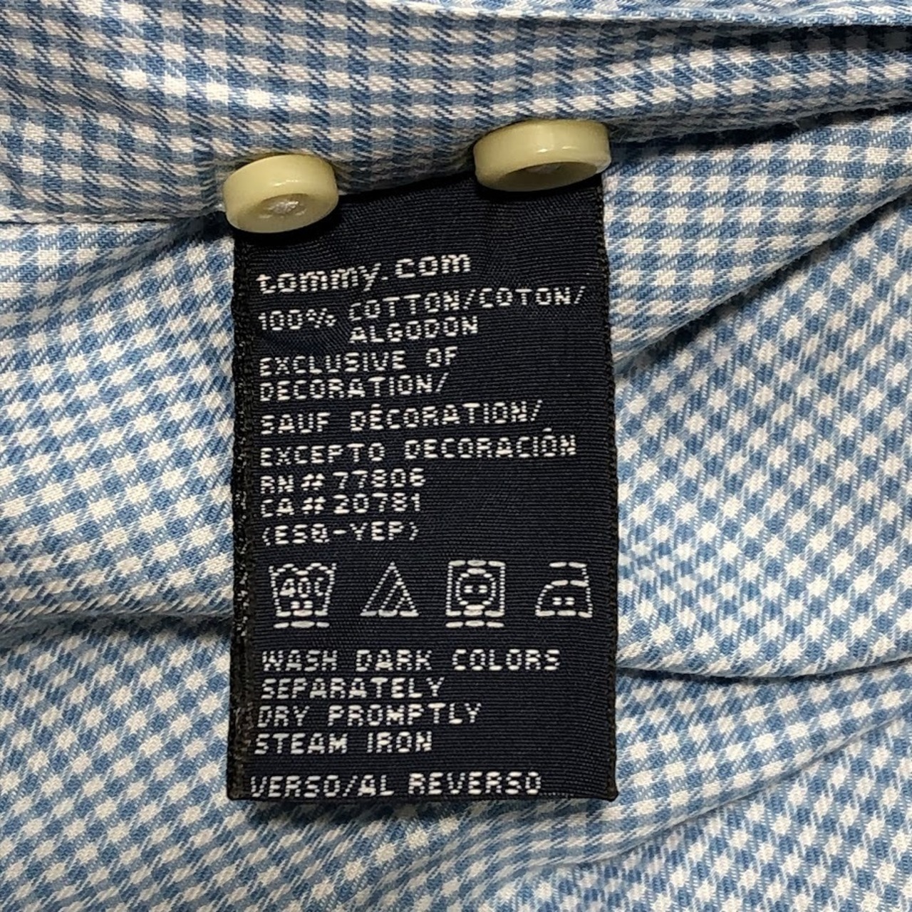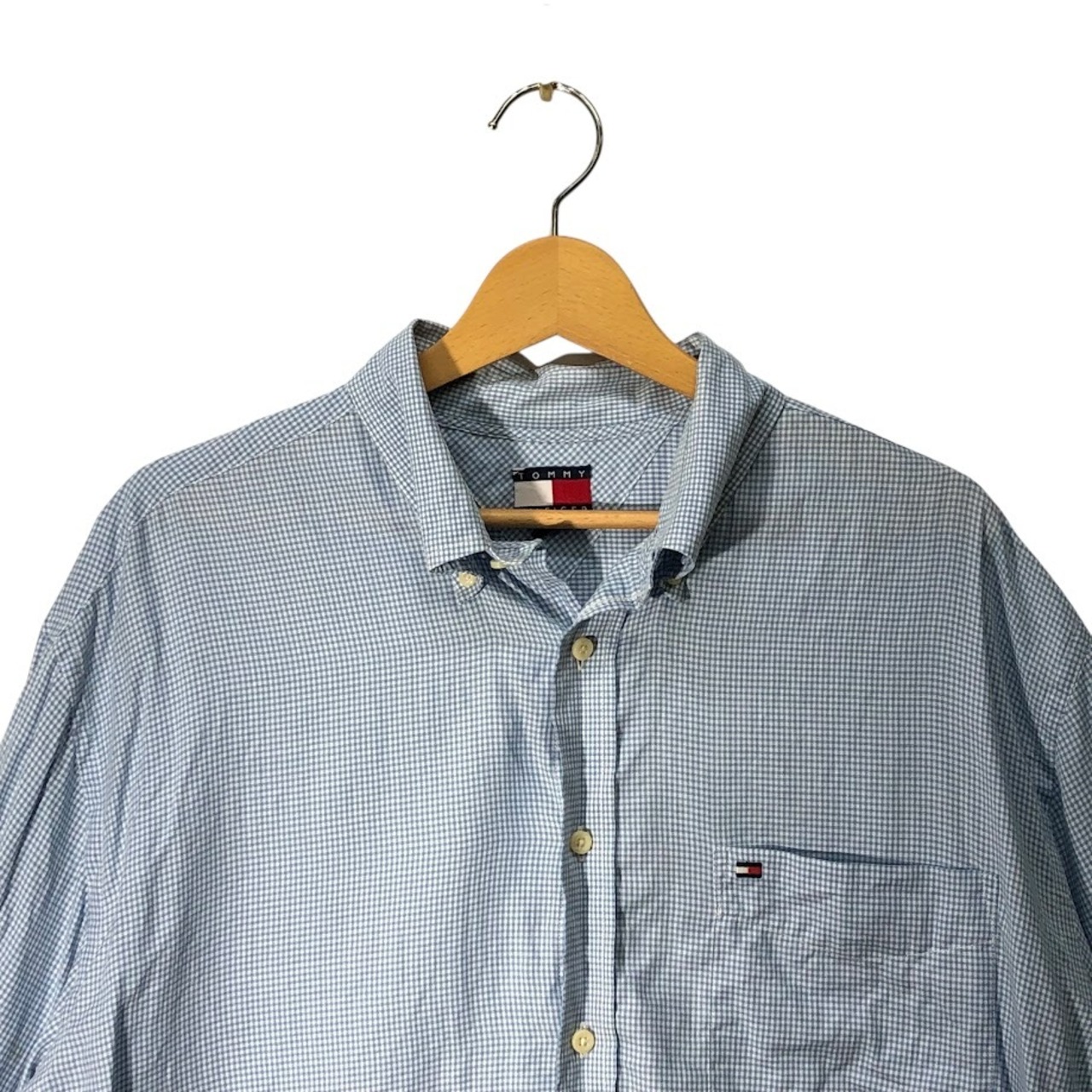 商品名:90's vintage 90年代 ヴィンテージ TOMMY HILFIGERトミーヒルフィガー 半袖シャツ ボタンダウンシャツ ビンテージ チェック柄 マレーシア製 Lサイズ ブルーオールド ホワイト