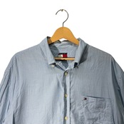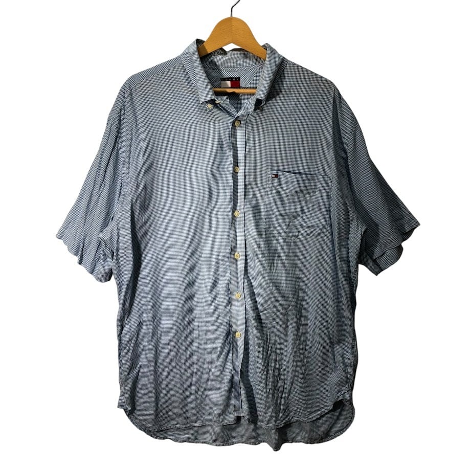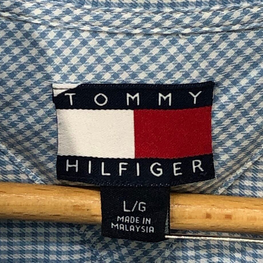 90's vintage 90年代 ヴィンテージ TOMMY HILFIGERトミーヒルフィガー 半袖シャツ ボタンダウンシャツ ビンテージ チェック柄 マレーシア製 Lサイズ ブルーオールド ホワイト