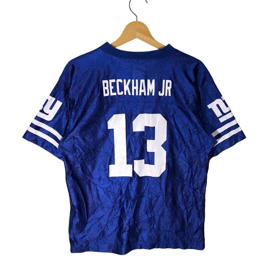 NFL PLAYERS エヌエフエルプレイヤーズ アメフト フットボールチーム スポーツゲームシャツ 13 GIANTS BECKHAMJR 半袖 Tシャツ フロントバックプリント Vietnam製 YOUTH 18/20 XLサイズ ブルー