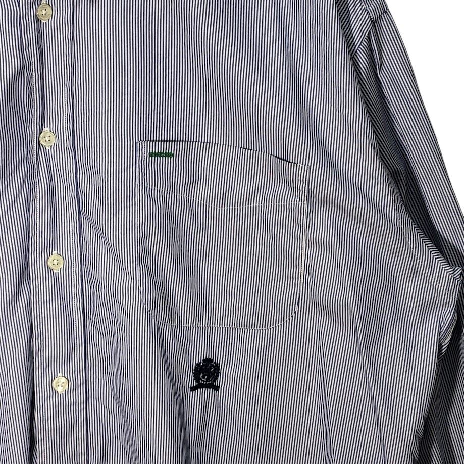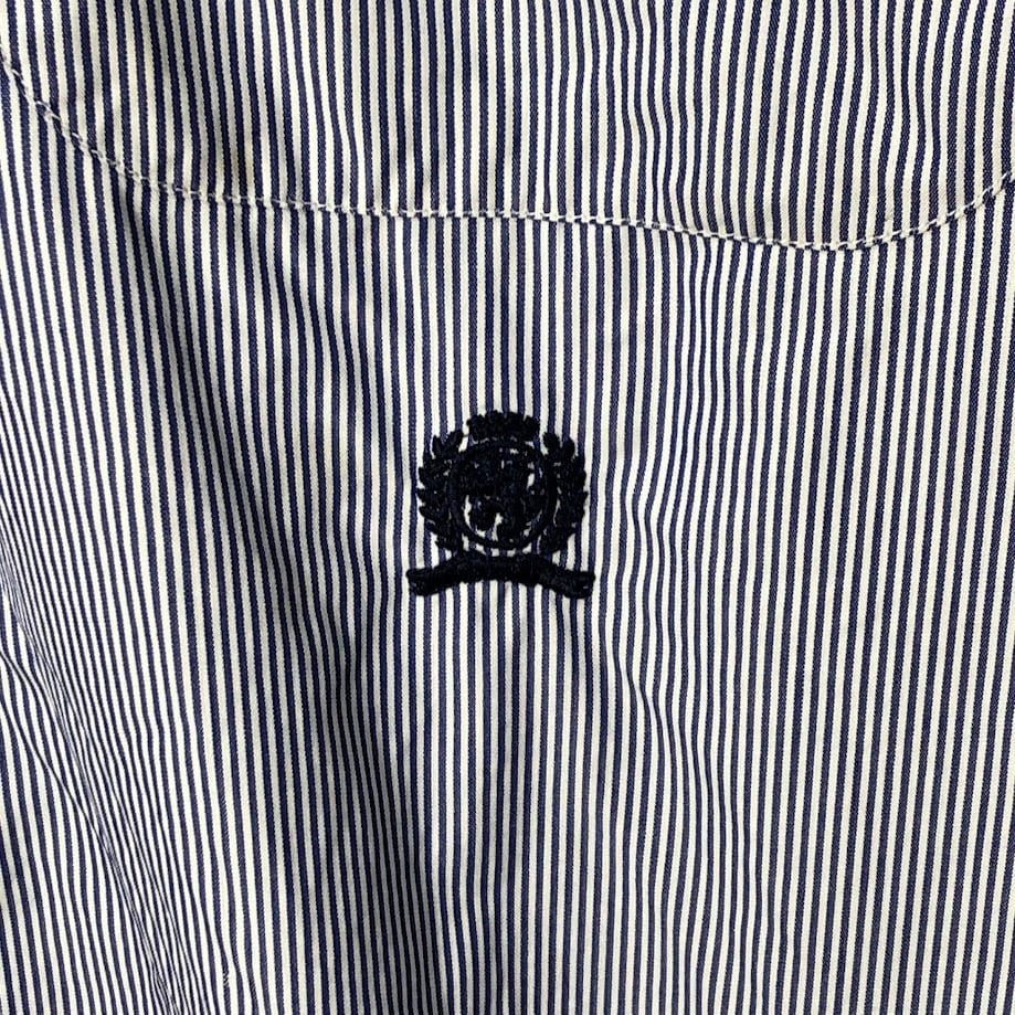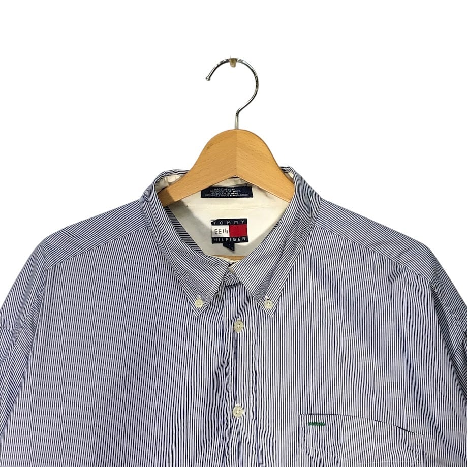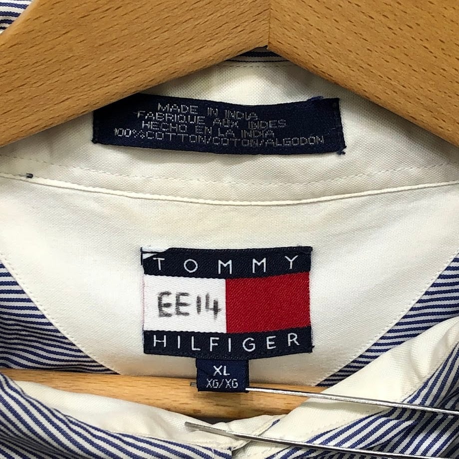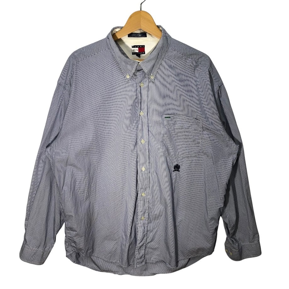 90's vintage 90年代 ヴィンテージ TOMMY HILFIGERトミーヒルフィガー 長袖シャツ ボタンダウンシャツ オールド ボーダー インド製 XLサイズ ブルー ホワイト