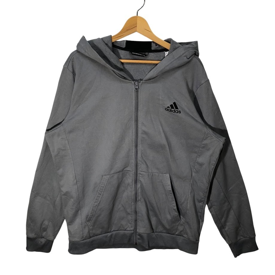 商品名:adidas BASKETBALL CLUB アディダス バスケットボールクラブ スリーライントラックジャケット ジップアップパーカー フード ジャージ ワンポイントプリント オーバーサイズ Vietnam製 XLサイズ グレー
