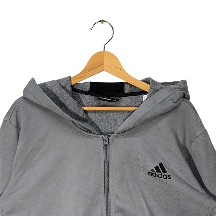 adidas BASKETBALL CLUB アディダス バスケットボールクラブ スリーライントラックジャケット ジップアップパーカー フード ジャージ ワンポイントプリント オーバーサイズ Vietnam製 XLサイズ グレー
