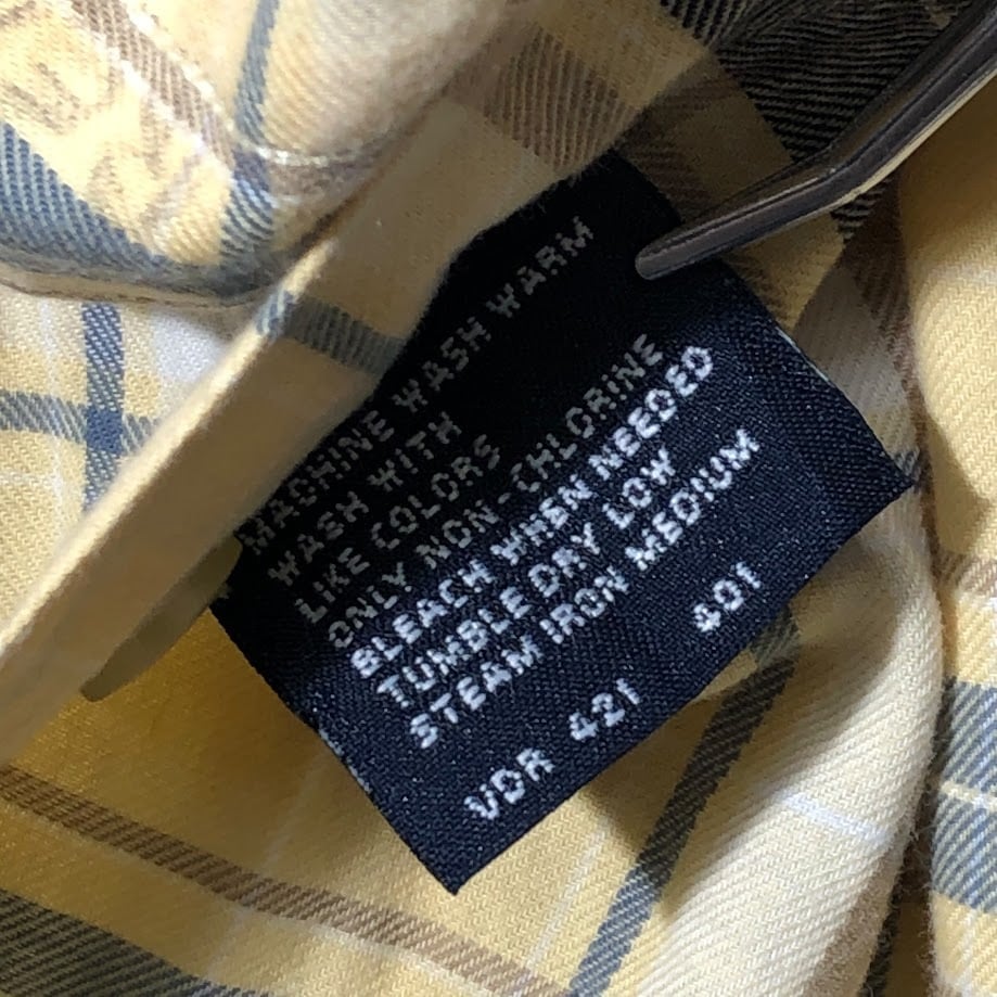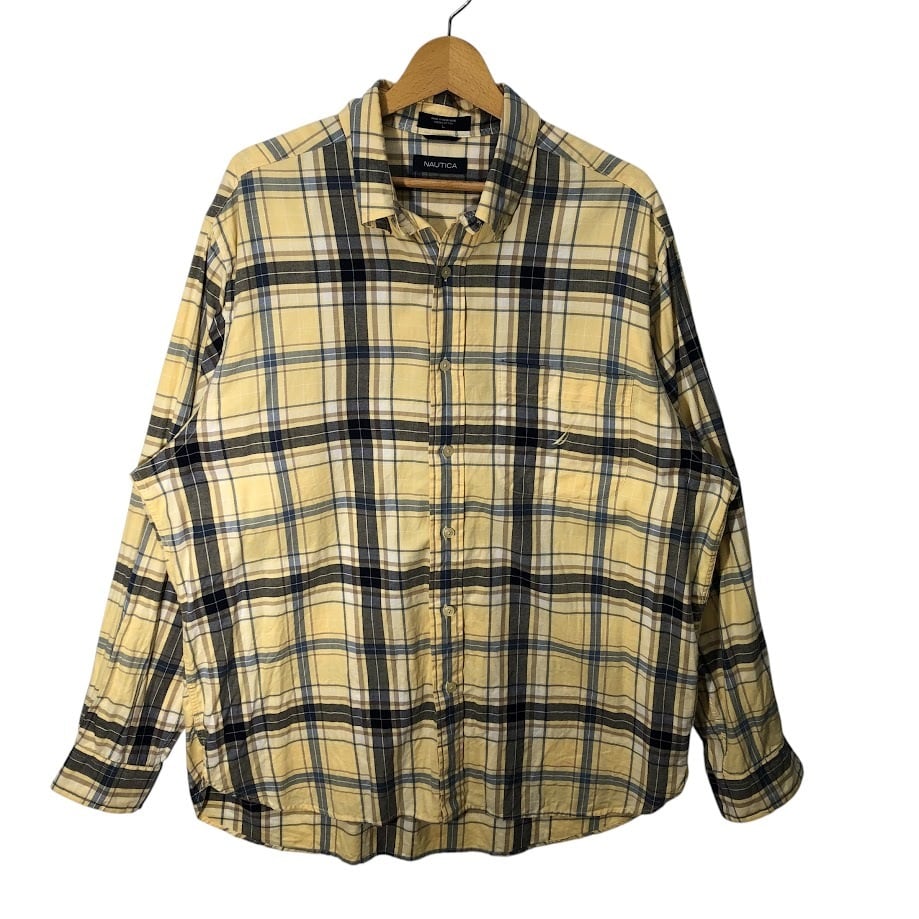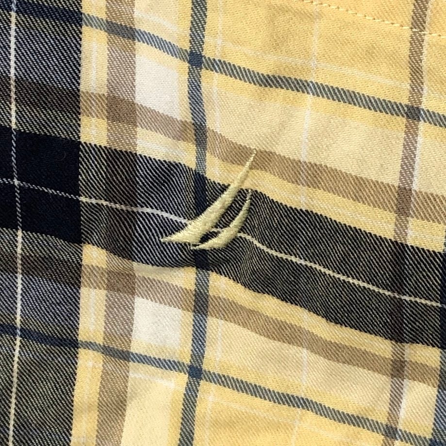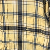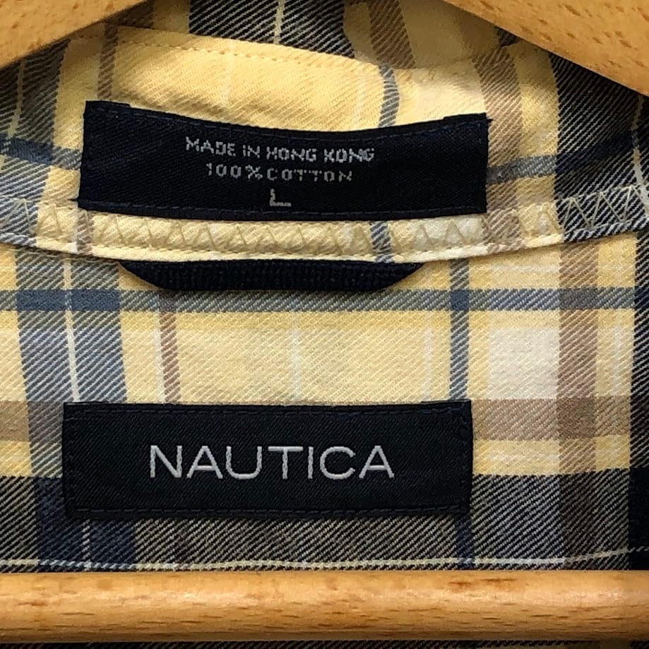 NAUTICA ノーティカ 長袖シャツ ボタンダウン チェック ロゴ刺繍 HongKong製 Lサイズ イエロー ネイビー