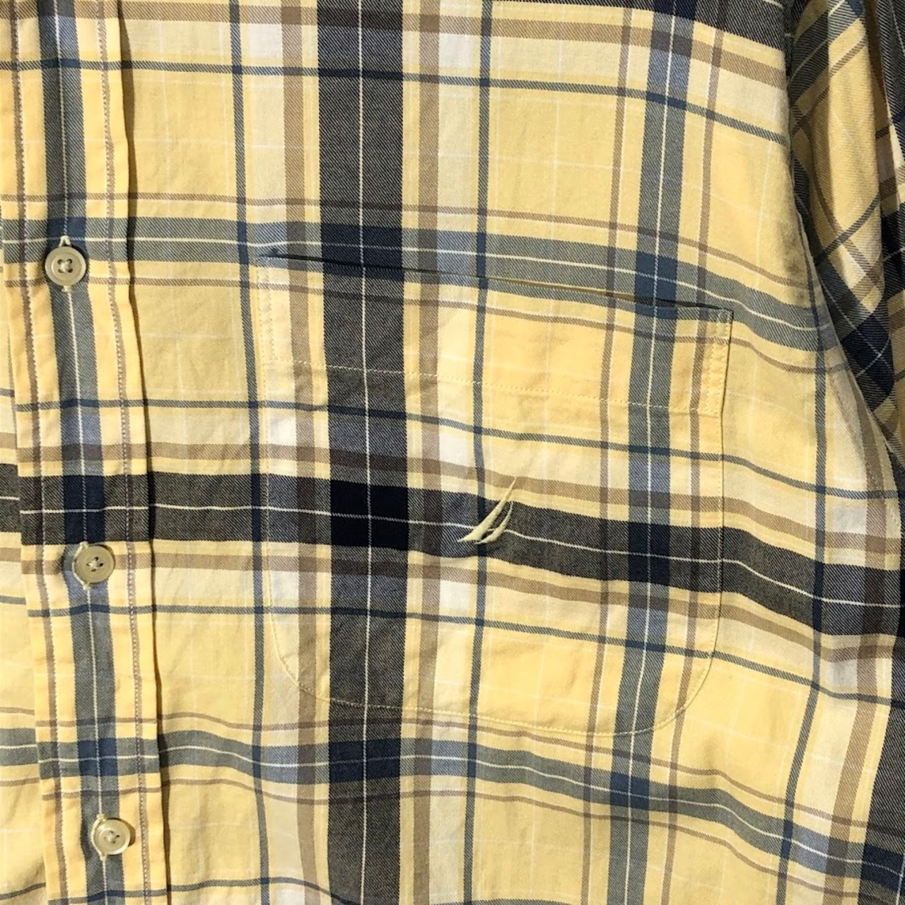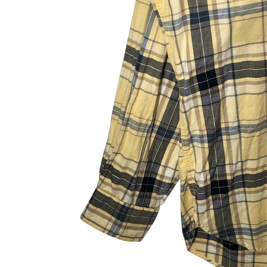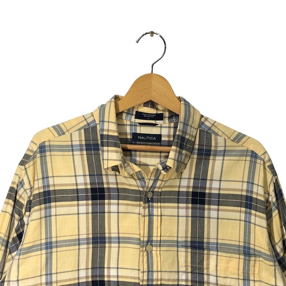 商品名:NAUTICA ノーティカ 長袖シャツ ボタンダウン チェック ロゴ刺繍 HongKong製 Lサイズ イエロー ネイビー