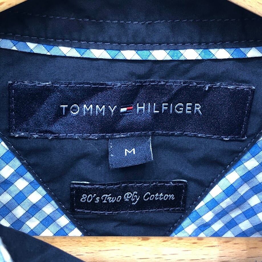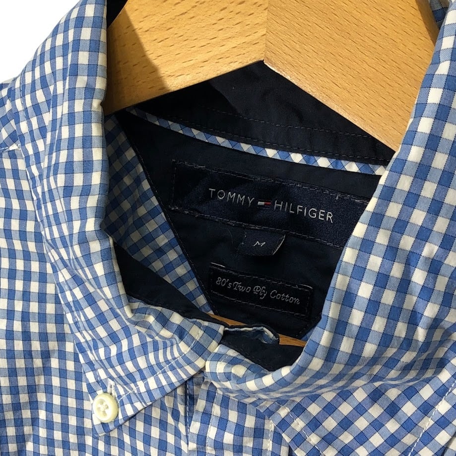 TOMMY HILFIGER 80's True Ply Cotton トミーヒルフィガー 長袖 シャツ ボタンダウン チェック柄 CHINA製 Mサイズ ブルー ホワイト