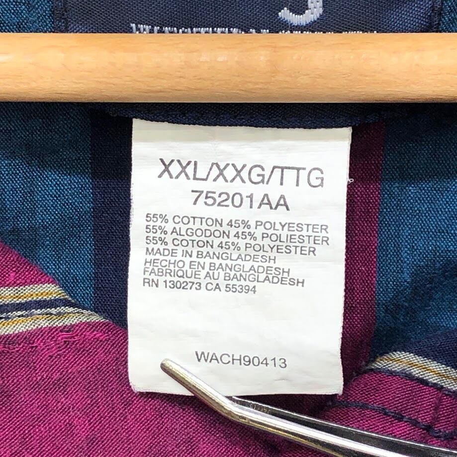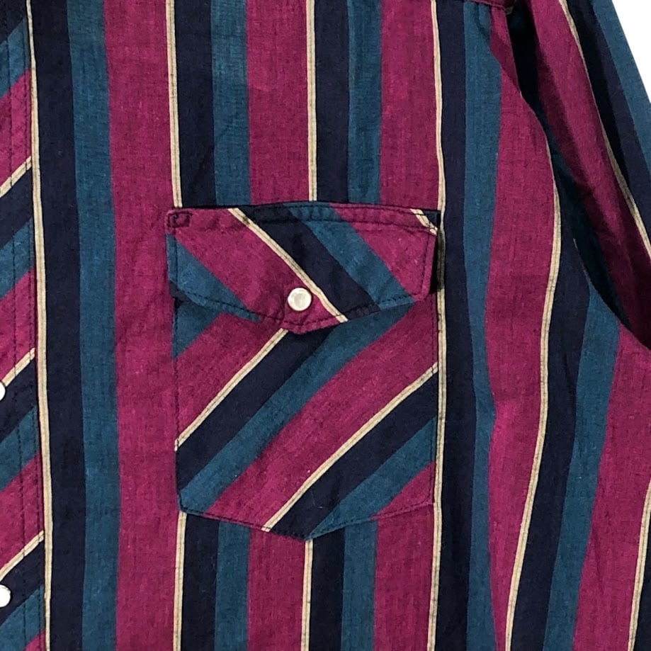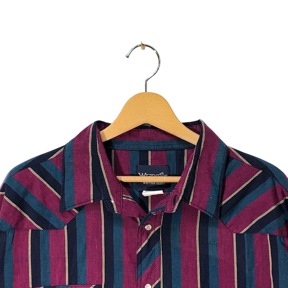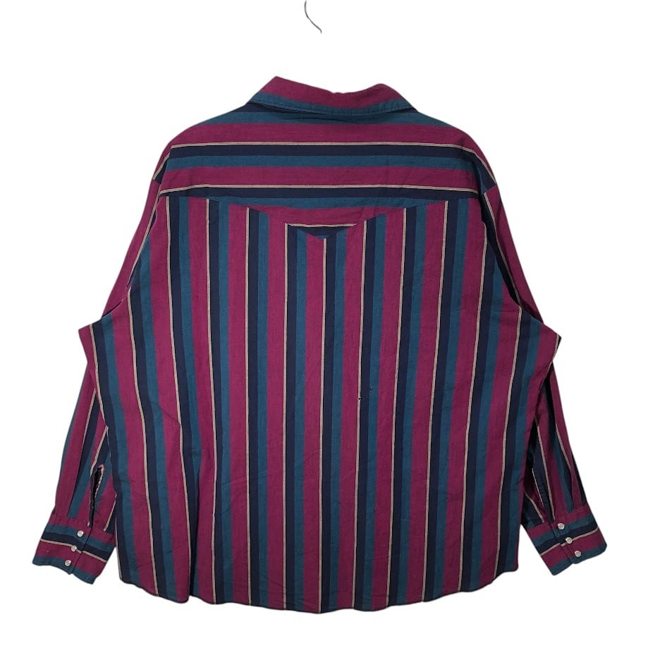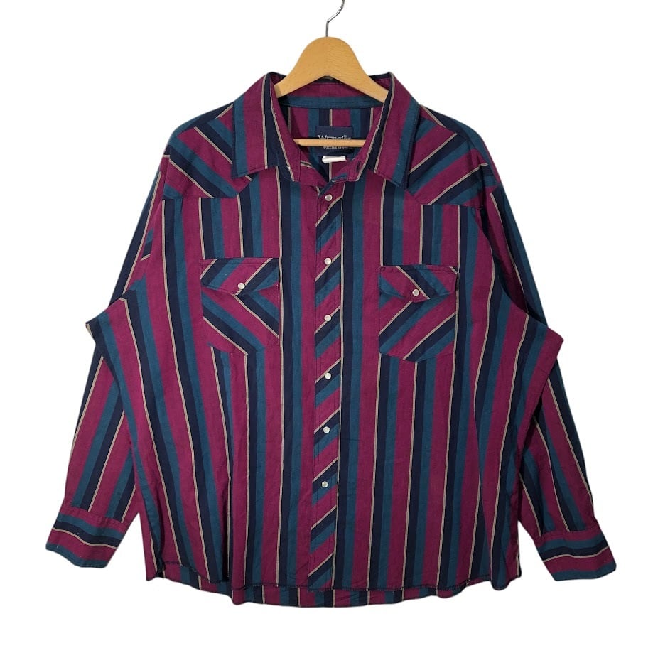 商品名:90's vintage 90年代 ヴィンテージ Wrangler ラングラー ウエスタンシャツ マルチカラー ストライプ柄 長袖 シャツ スナップボタン オーバーサイズ ビッグシルエット バングラデシュ製 XXLサイズ パープル ネイビー ブルー