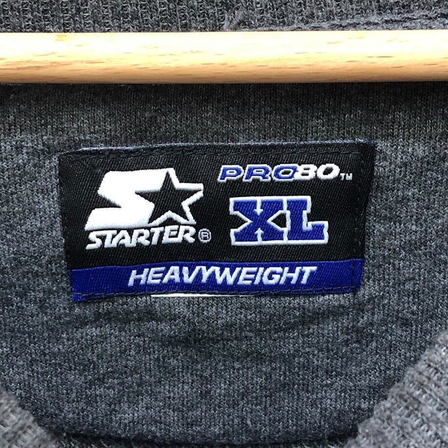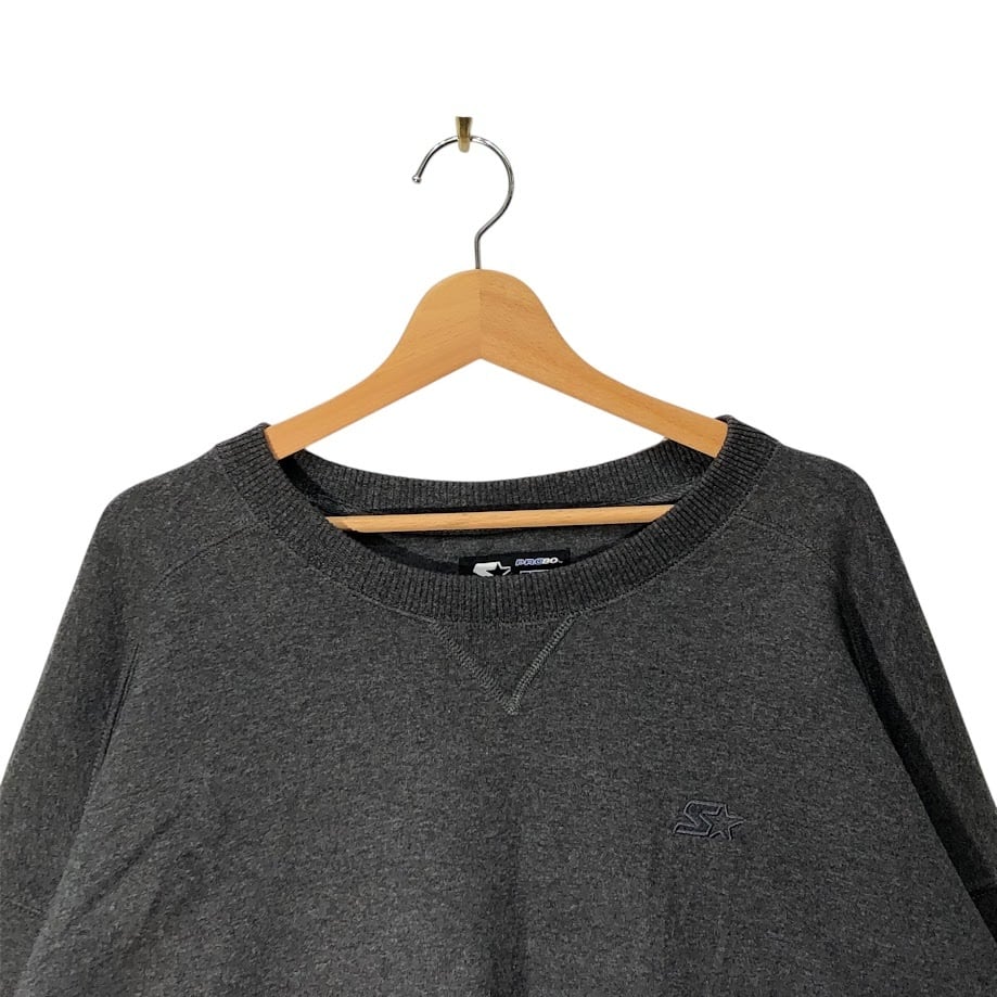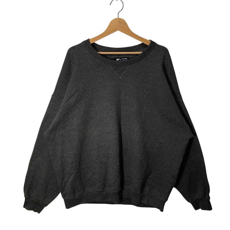 STARTER スタータースウェット トレーナー ワンポイン 星 裏起毛 長袖 ワンポイント刺繡 オーバーサイズ ビックシルエット クルーネック XLサイズ ダークグレー