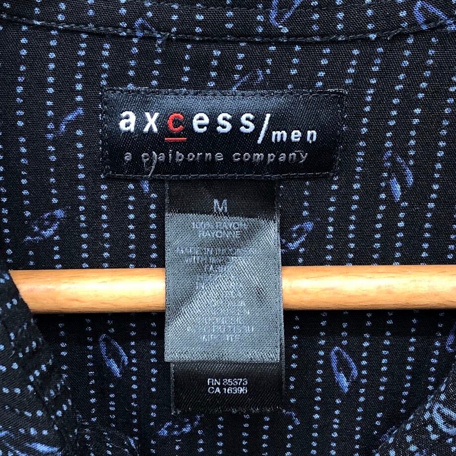 axcess レーヨンシャツ 総柄 半袖 シャツ ボタンダウン ビッグシルエット インドネシア製 Mサイズ ブラック