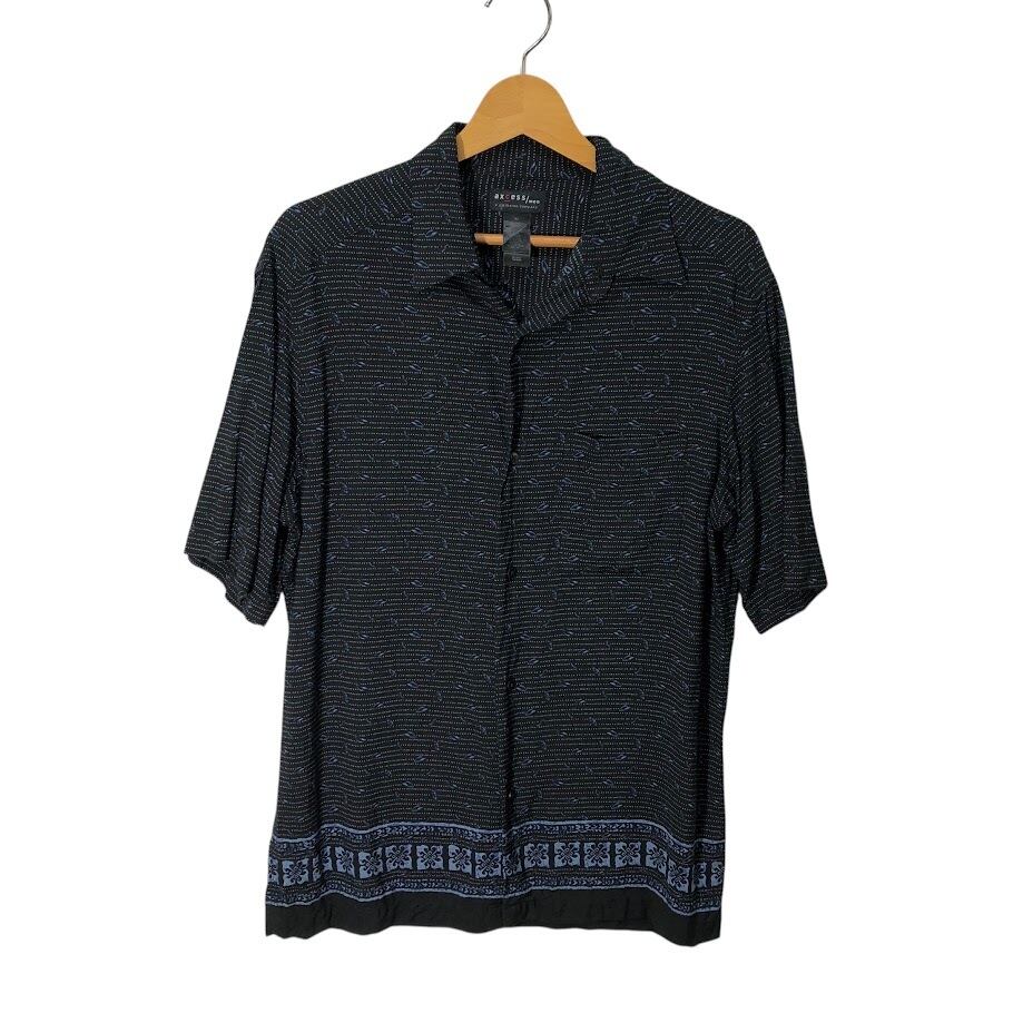 商品名:axcess レーヨンシャツ 総柄 半袖 シャツ ボタンダウン ビッグシルエット インドネシア製 Mサイズ ブラック