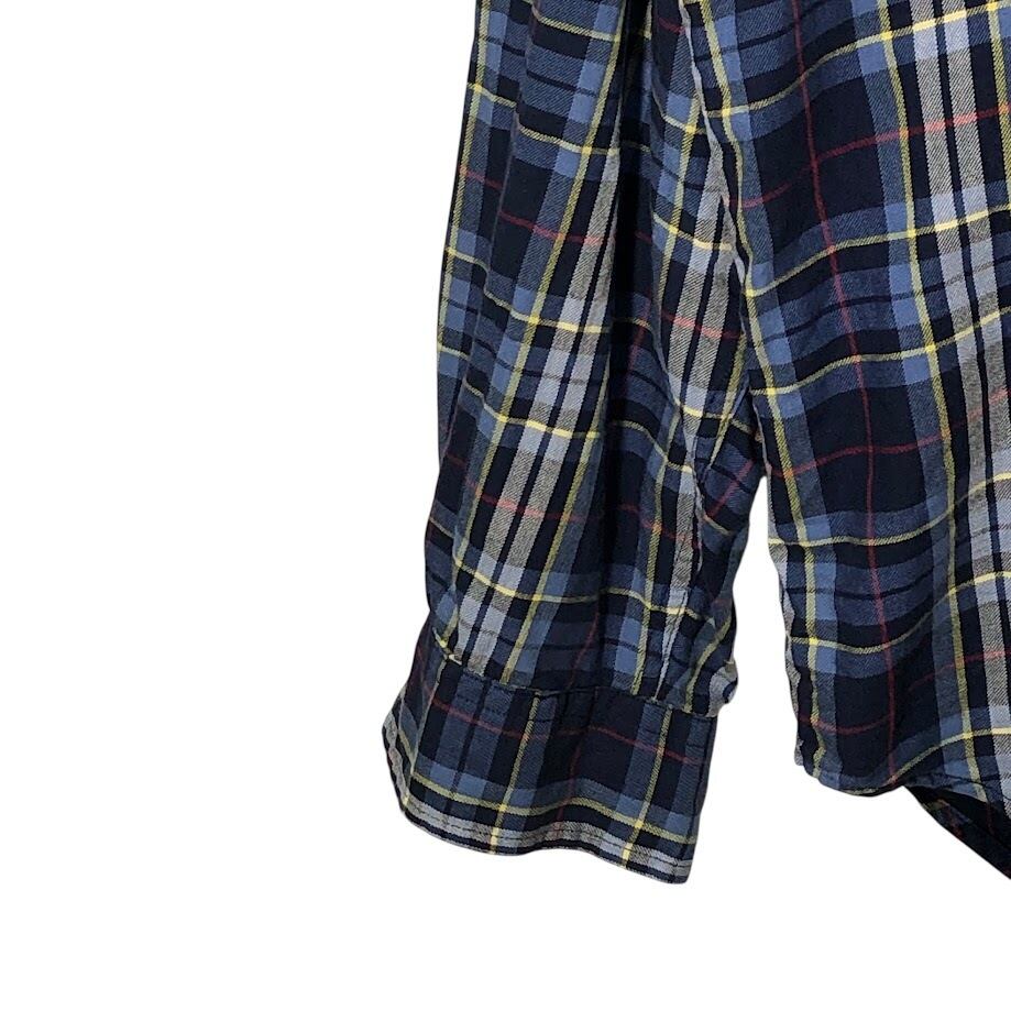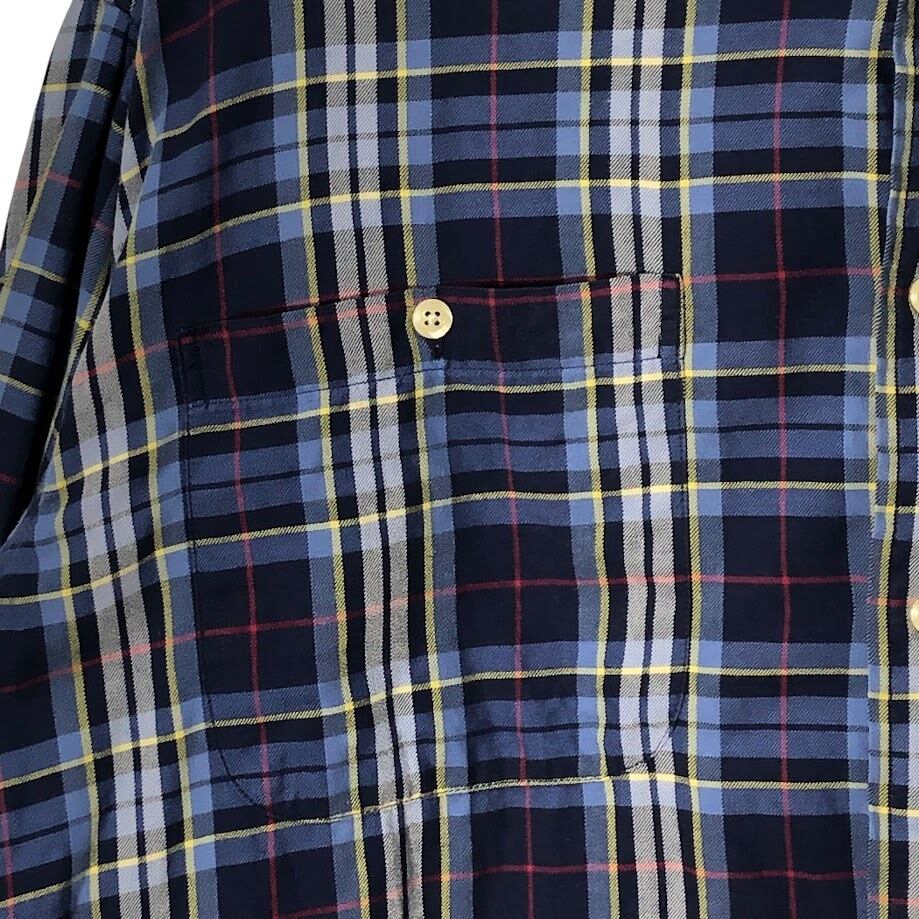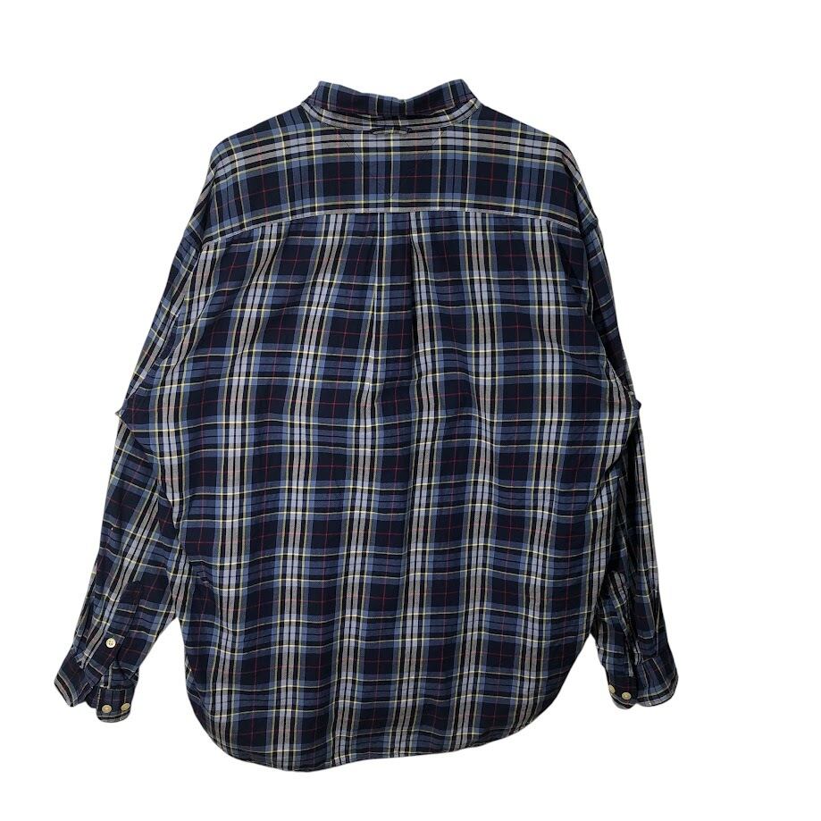 商品名:90's vintage 90年代 ヴィンテージ TOMMY HILFIGER トミーヒルフィガー チェック柄 チェックシャツ 長袖 シャツ ボタンダウン ワンポイントロゴ刺繡 オーバーサイズ インドネシア製 XLサイズ ネイビー ブルー