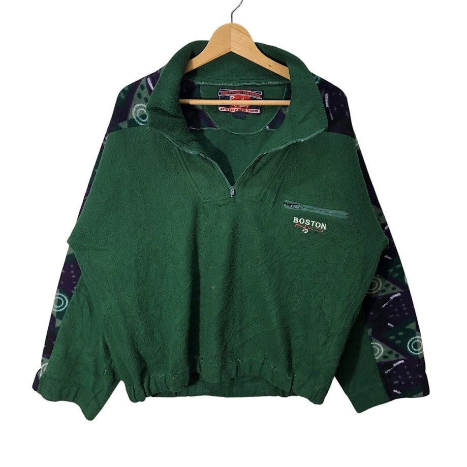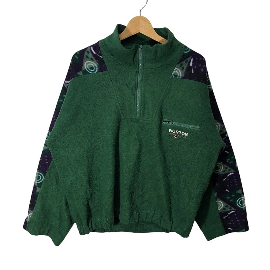 商品名:ヴィンテージ Boston Company ボストンカンパニー フリースプルオーバージャケット ハーフジップ 長袖 ワンポイント刺繡 44サイズ Sサイズ グリーン