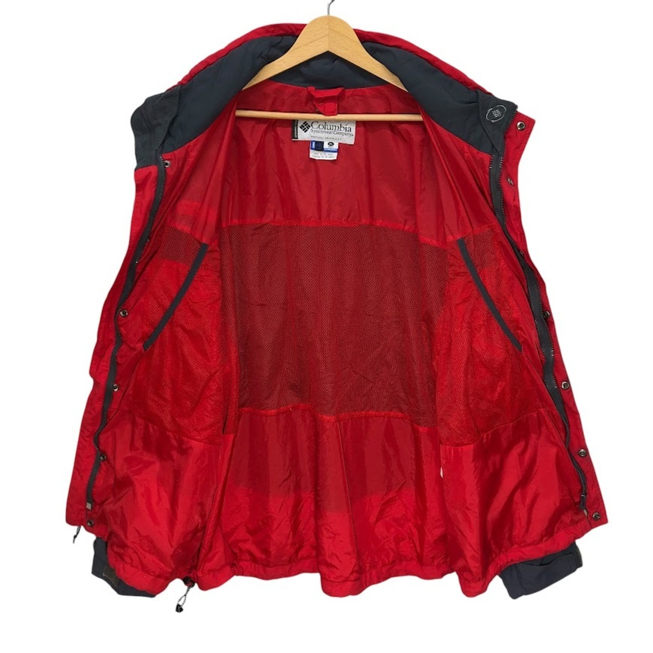 商品名:00's vintage 00年代 ヴィンテージColumbia Summit Zone コロンビア サミットゾーン ナイロンジャケット マウンテンジャケット オーバーサイズ ワンポイントロゴ ドローコード スリランカ製 XLサイズ レッド グレー
