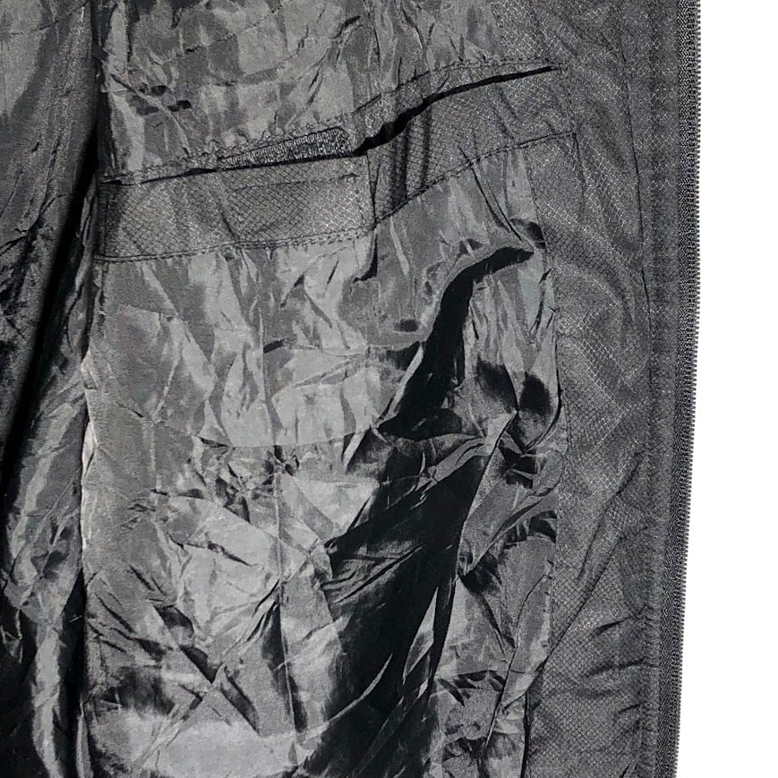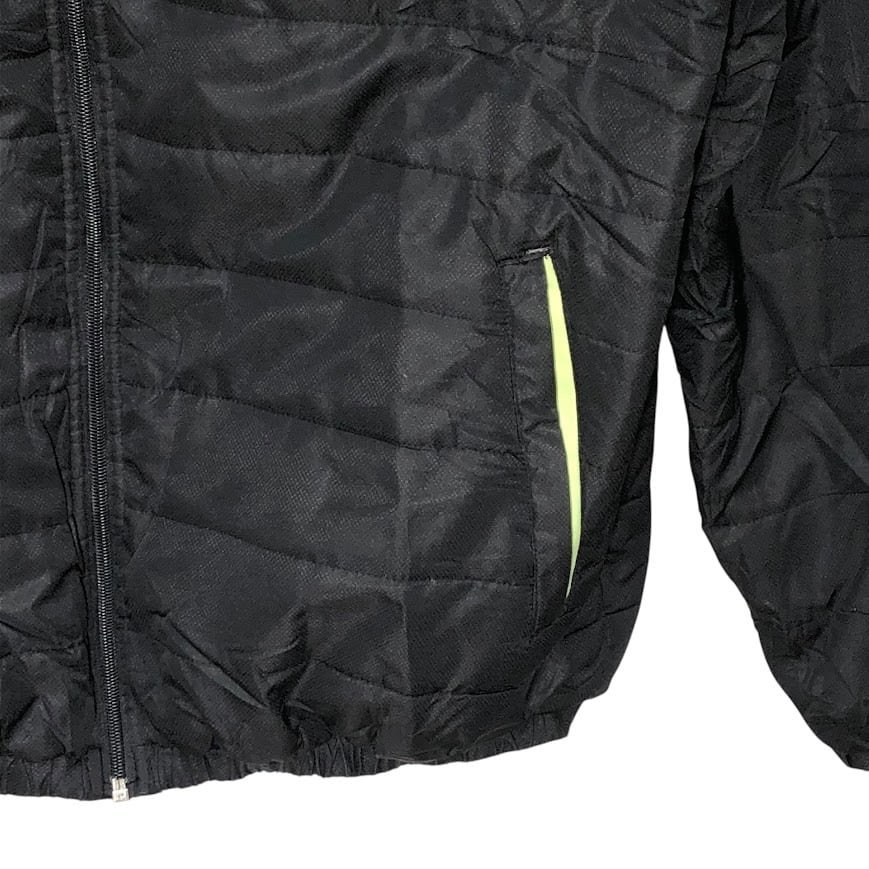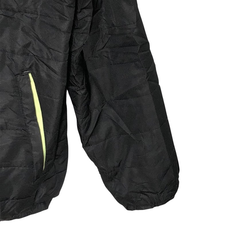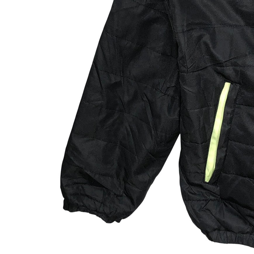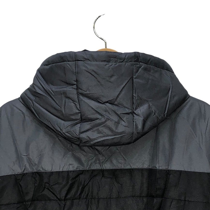 商品名:80~90's vintage 80~90年代 ヴィンテージ unmbro アンブロ TAILOREG By umbro 中綿キルティング フード アウター ナイロンジャケット ブルゾン ワンポイントプリント Lサイズ ブラック グレー