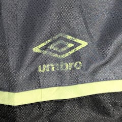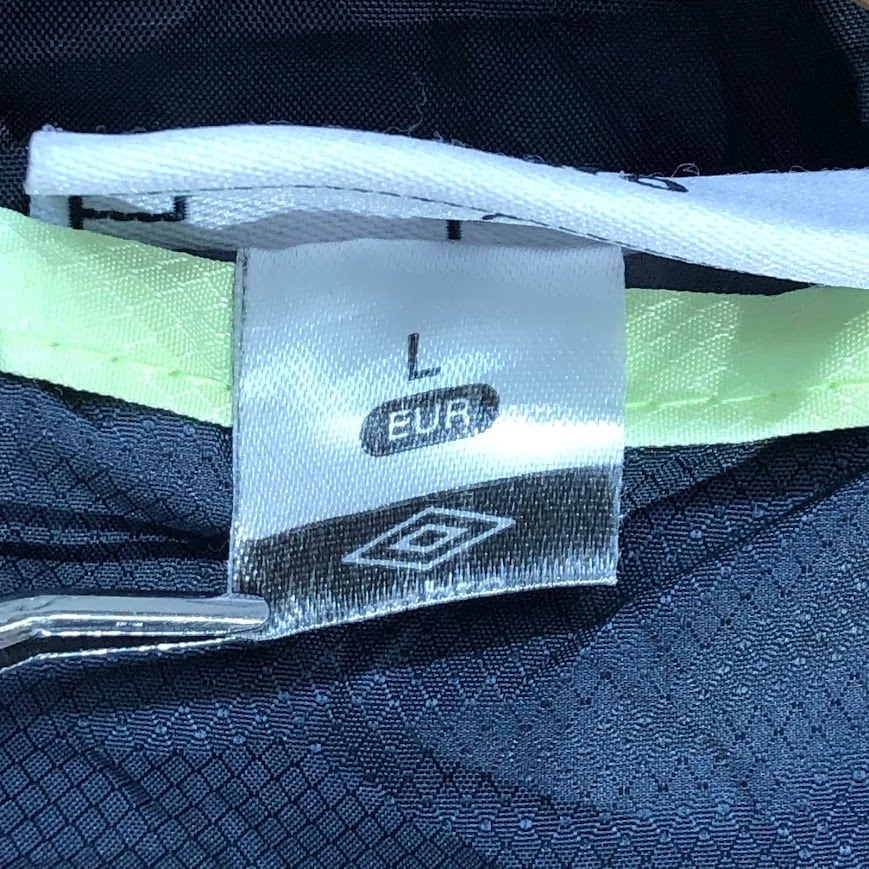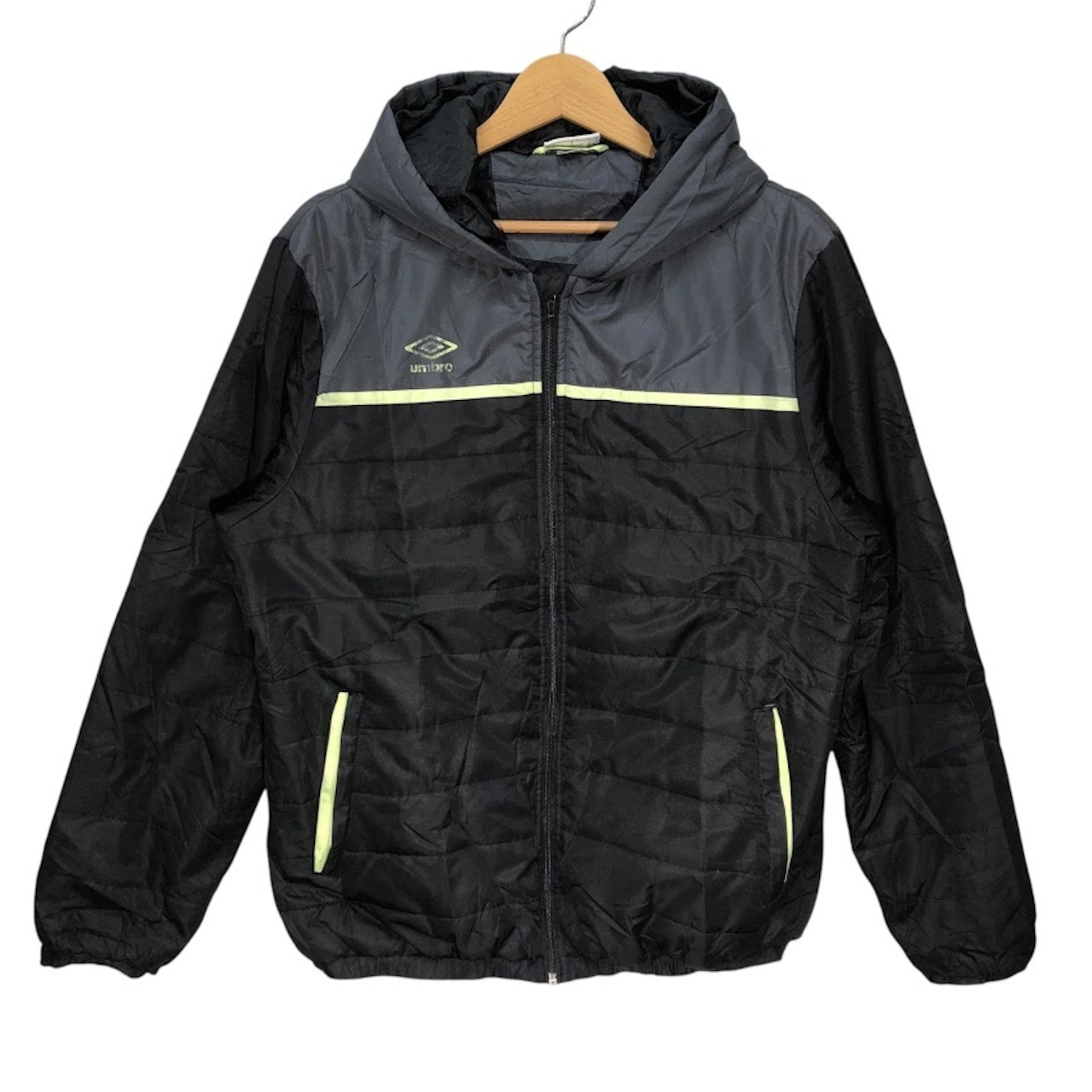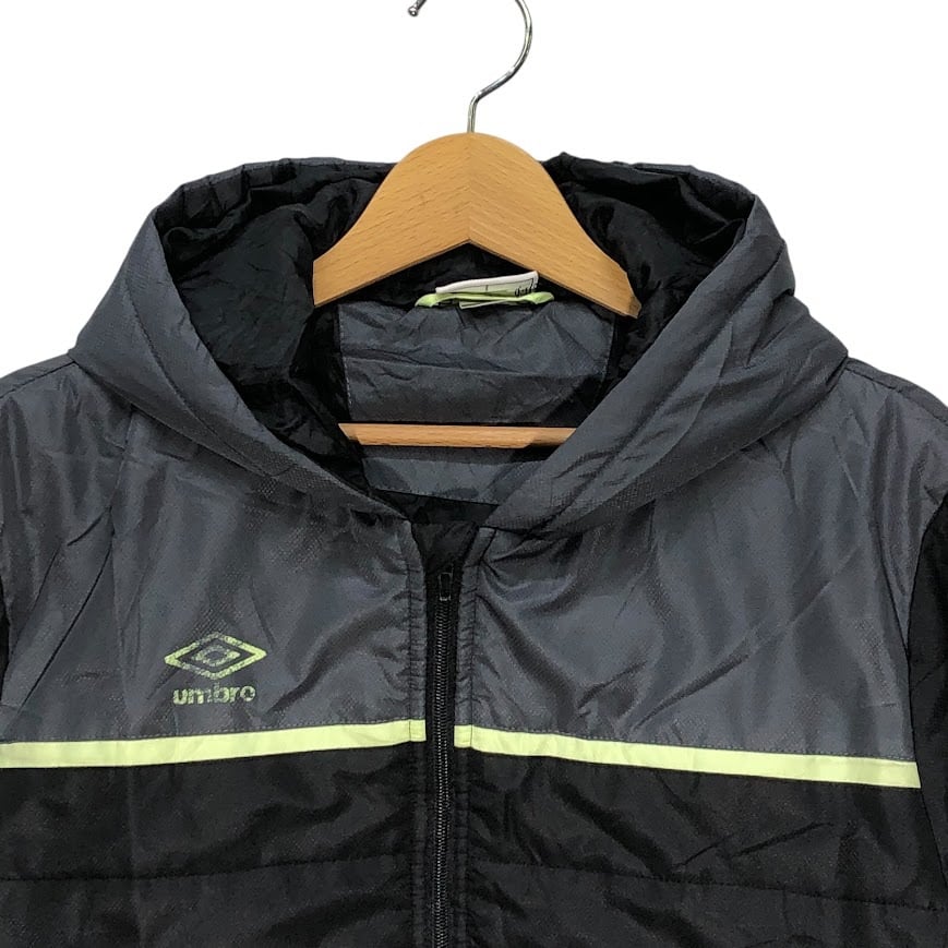 80~90's vintage 80~90年代 ヴィンテージ unmbro アンブロ TAILOREG By umbro 中綿キルティング フード アウター ナイロンジャケット ブルゾン ワンポイントプリント Lサイズ ブラック グレー
